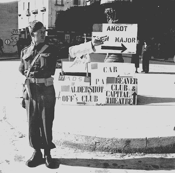 Lance-Corporal D.G. Stackhouse, Royal Canadian Mounted Police (RCMP), directing traffic, Campobasso, Italy, 21 October 1943.