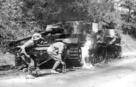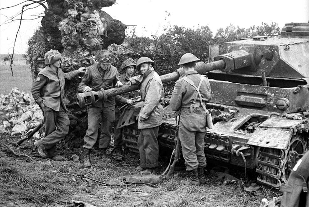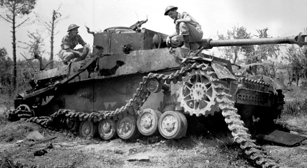German PzKpfW IV tank, knocked out by Canadians, Guchy, France, 9 July 1944.