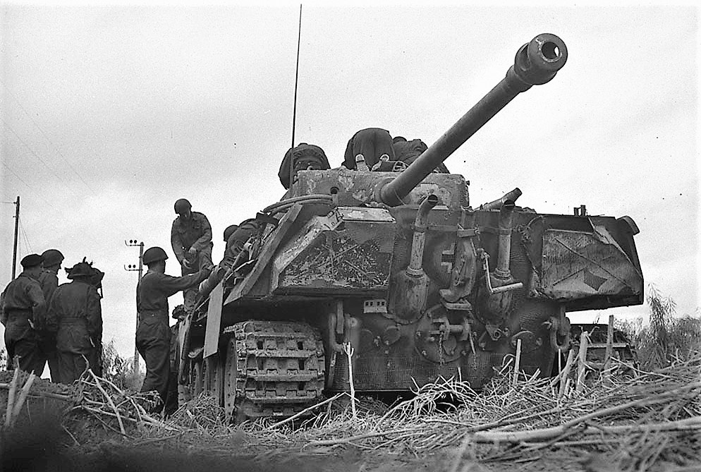 After D-Day, the 1st Hussars continued to support infantry as it advanced and faced German counter-attacks. On 9 June, the 1st Hussars supported the Canadian Scottish as they re-took Putot-en-Bessin and engaged German Panther tanks of the 1st Battalion, SS-Panzer Regiment 12 (of the 12th SS Panzer Division Hitlerjugend), destroying 6.