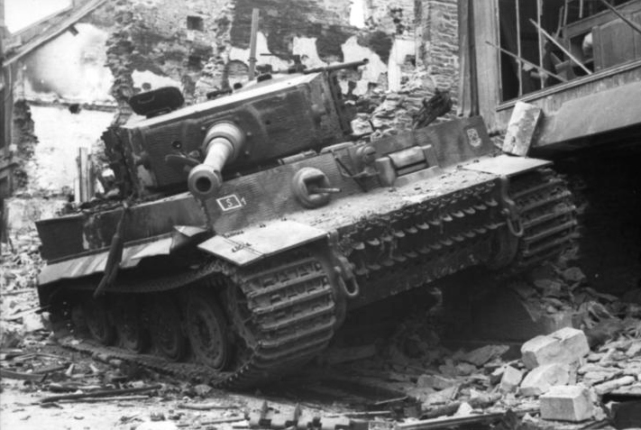 Panzer VI (Tiger I), Heavy SS Battalion 101, destroyed in Villers-Bocage, Normandy, June 1944.