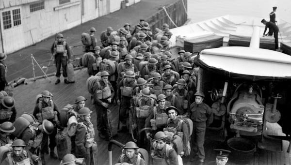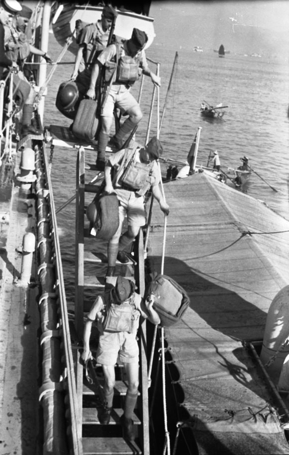 The Royal Rifles of Canada, C Coy, disembarking from HMCS Prince Robert, Hong Kong, 16 Nov 1941.