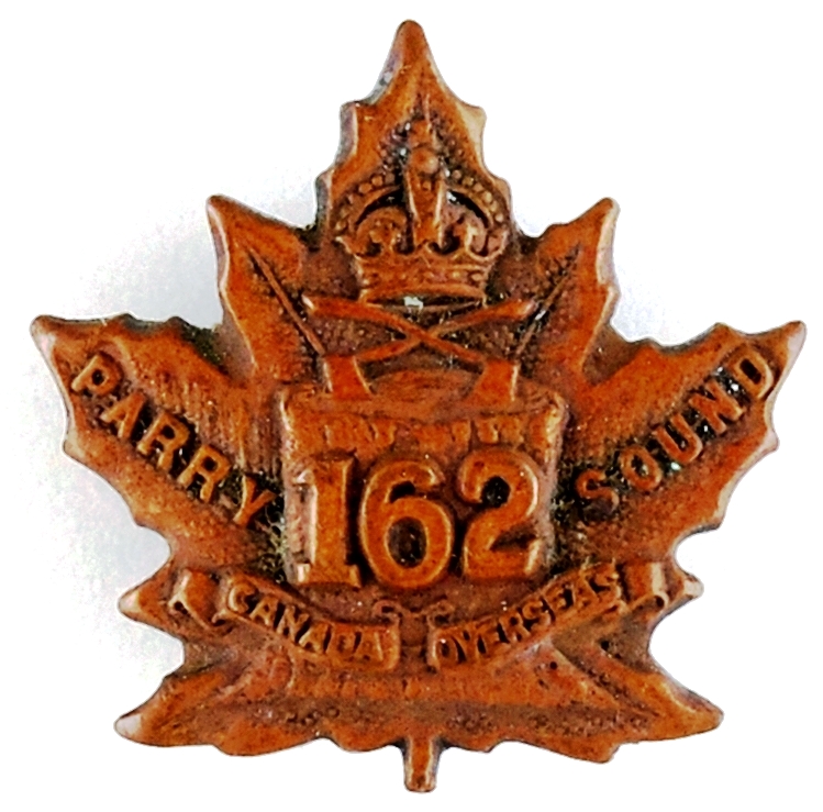 162nd Battalion (Parry Sound). Authorized on 22 December 1915, disbanded on 30 August 1920.