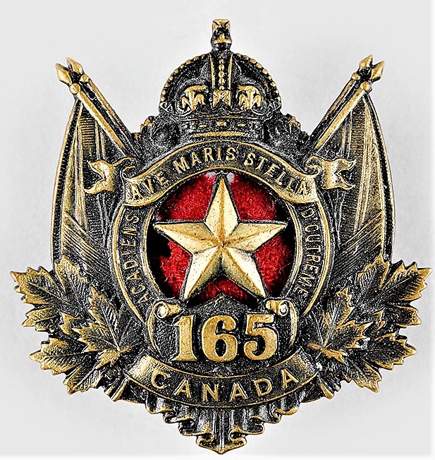 165th Battalion (Acadiens). Authorized on 22 December 1915, disbanded on 15 April 1918.