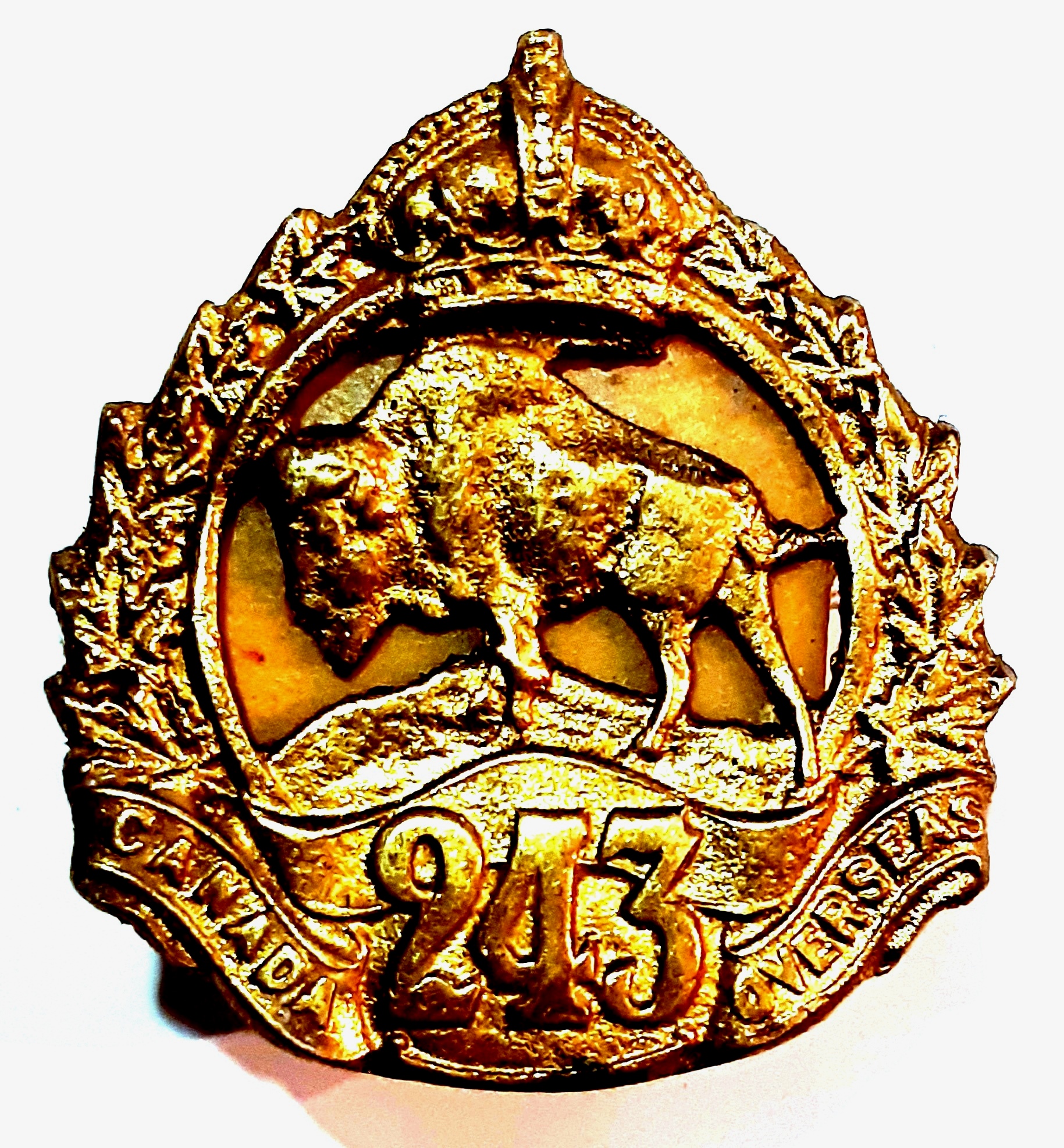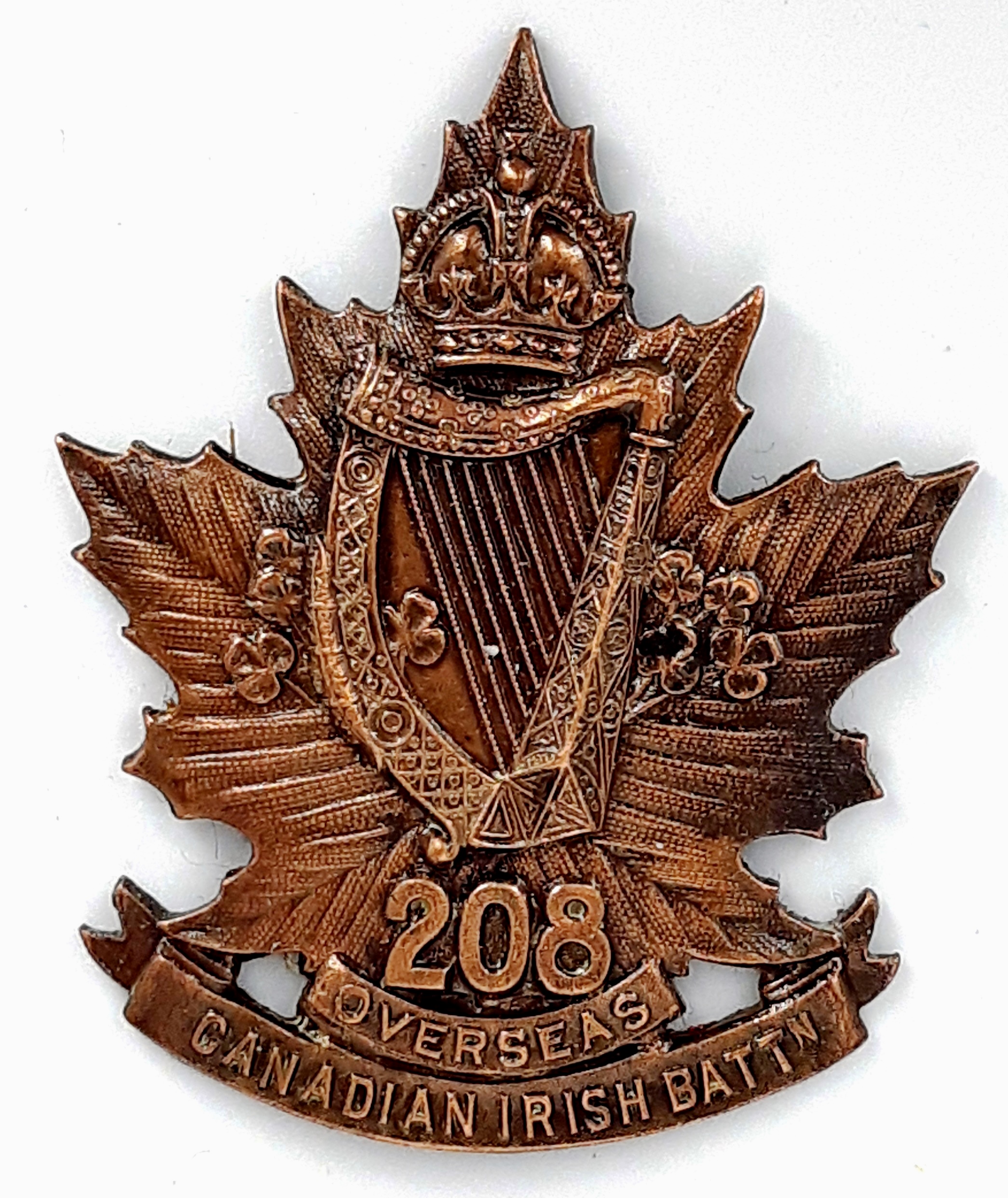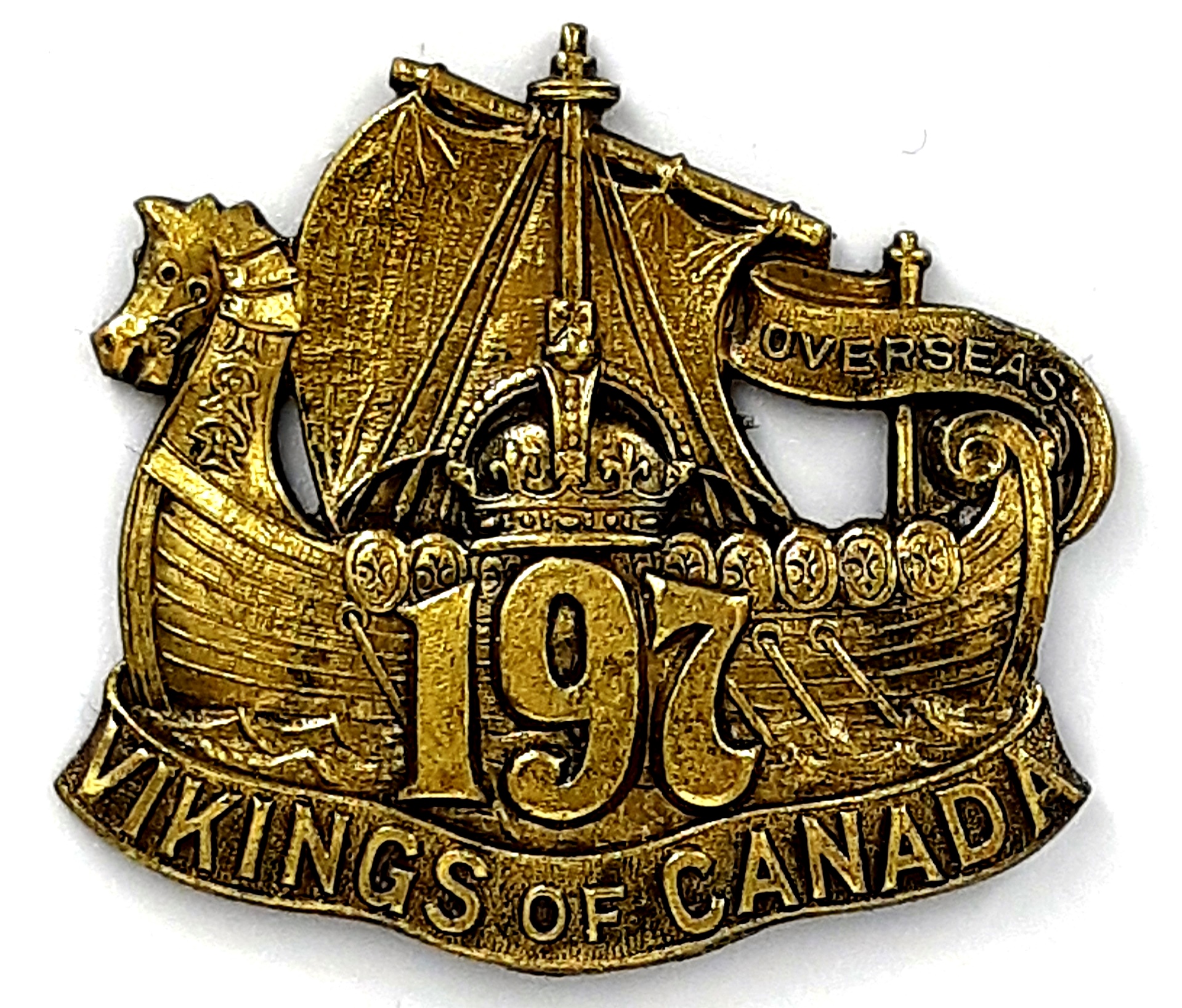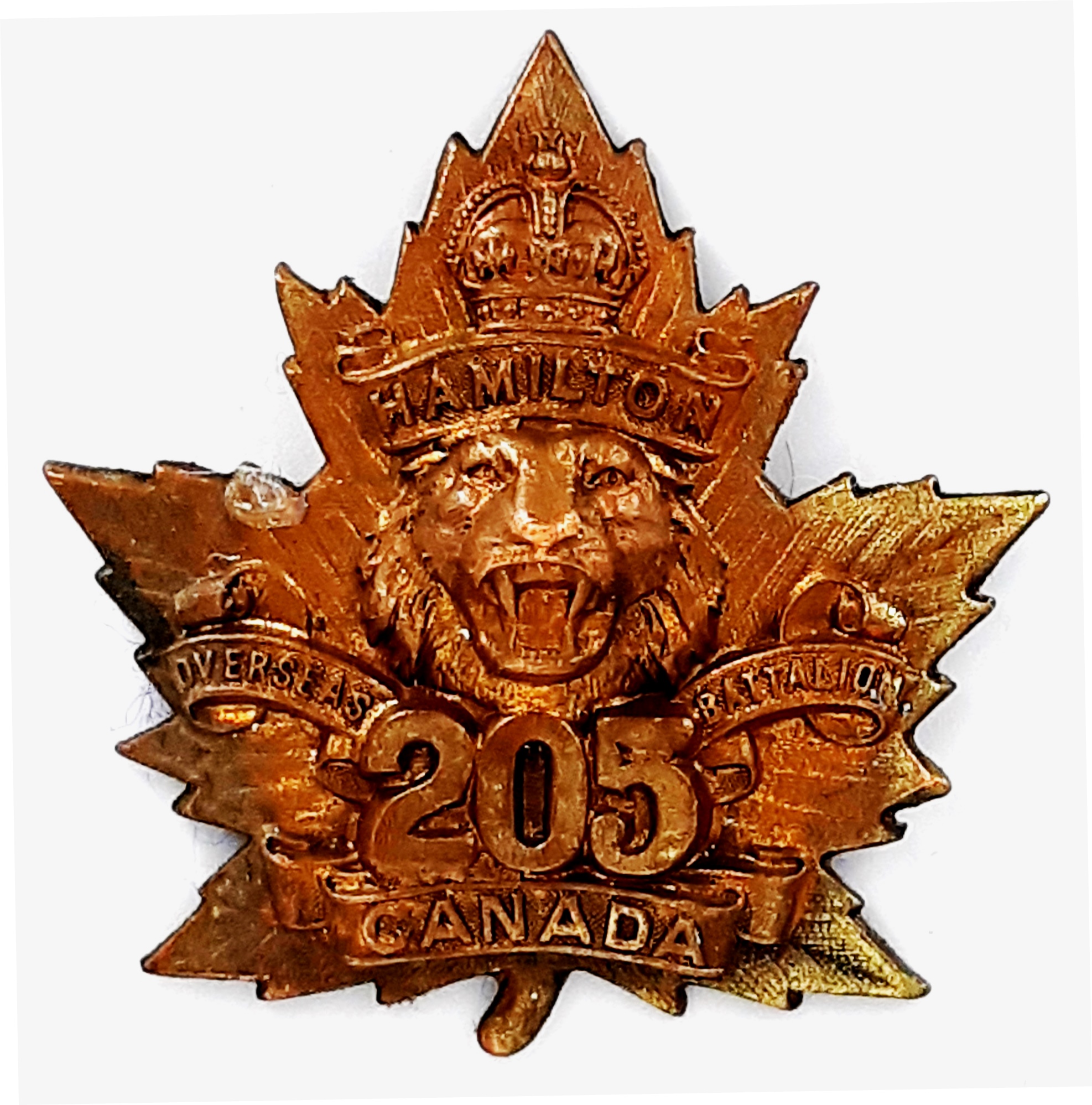 The 177th (Simcoe Foresters) Battalion was recruited in Simcoe County with mobilization headquarters at Barrie under General Order 69 of July 15th 1916 by the 35th Simcoe Foresters this regiment previously having provided 124 volunteers to the 4th Battalion on its formation at Camp Valcartier in August 1914.The regiment also raised the 157th Battalion the badges for both battalions, including interim patterns, being almost identical. The 177th Battalion sailed for England on 3 May 1917 under command of Lieutenant-Colonel J.B. McGhee (35th Simcoe Foresters), with a strength of 19 officers and 549 other ranks. After its arrival the battalion was absorbed into the 3rd Reserve Battalion one of two reserve battalions for the 1st Central Ontario Regiment supplying reinforcements for the 4th and 19th Battalions and the 2nd and 4th Canadian Mounted Rifles serving with the Canadian Corps on the Western Front. Being fully depleted of all ranks the 177th Canadian Infantry battalion was disbanded effective 15 April 1918 under General Order 60 of 1 June 1918.
