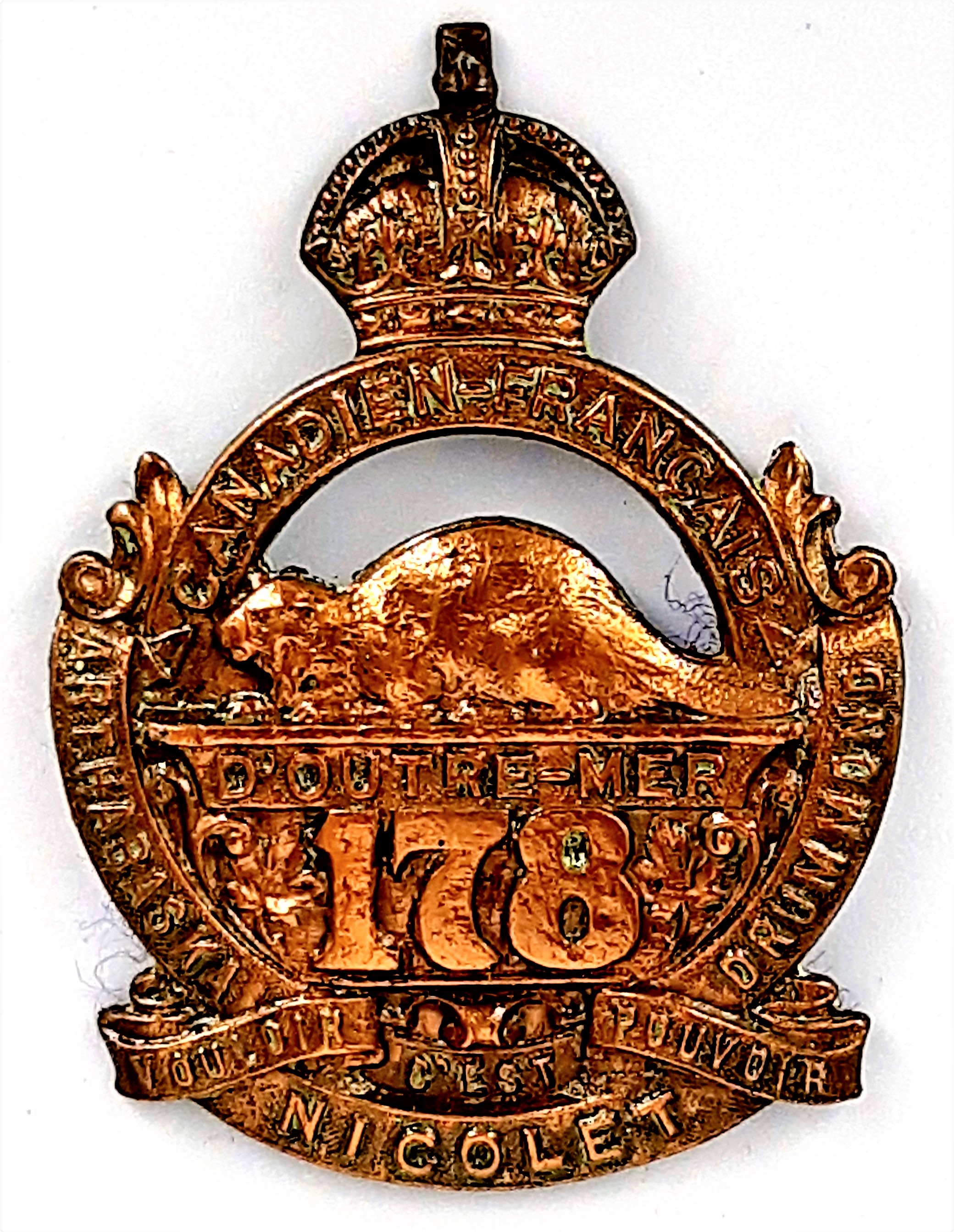 178th Battalion (Canadien Français). Authorized on 15 July 1916, disbanded on 21 May 1917.