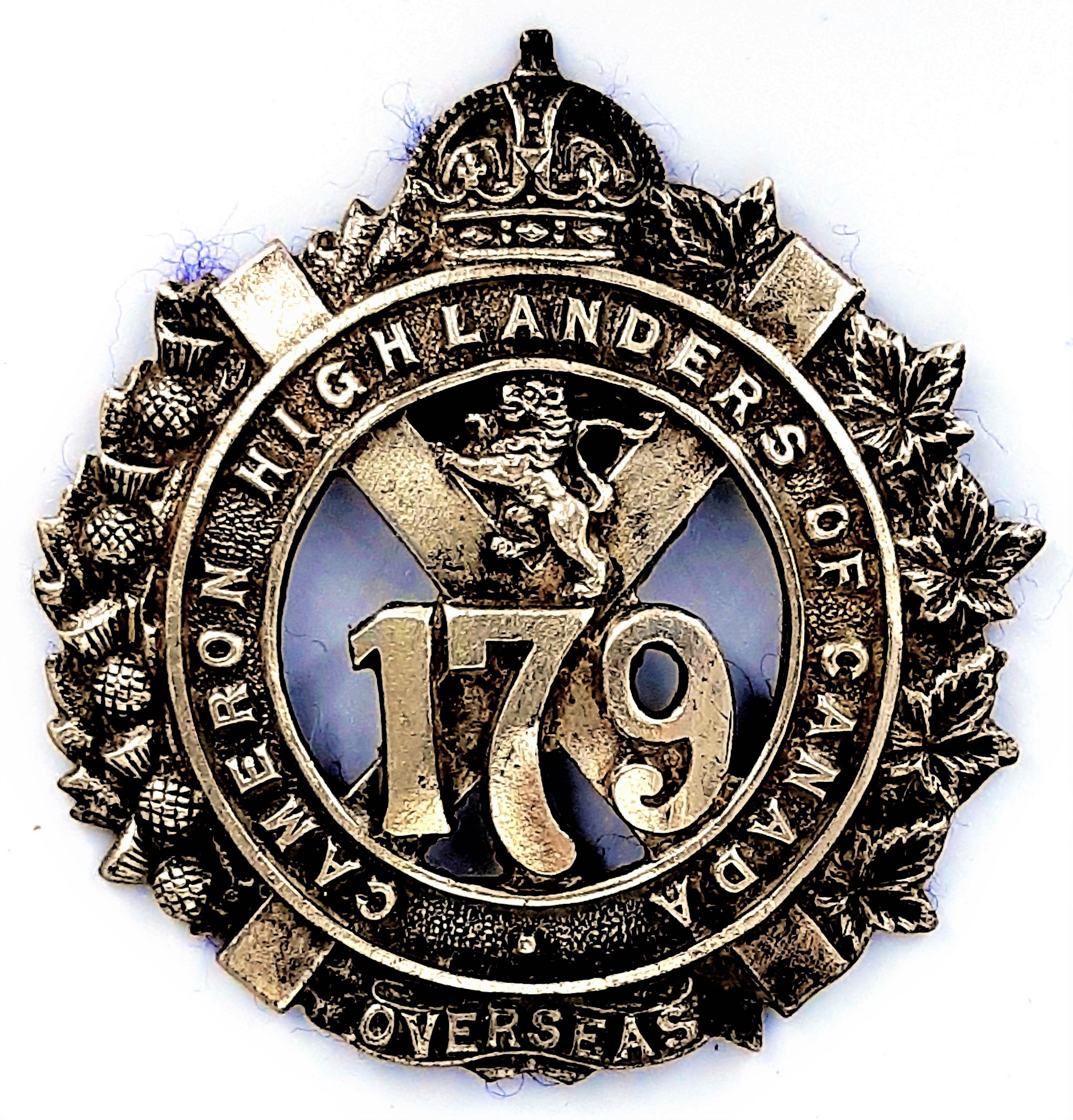 The 179th (Cameron Highlanders of Canada) Battalion was recruited and mobilized at Winnipeg under General Order 69 of 15 July 1916 by the 79th Cameron Highlanders of Canada this previously having provided 263 volunteers to the 16th Battalion on its formation at Camp Valcartier in August 1914 and later also raised the 43rd and 174th Battalions, this battalion not sailing for England until in April 1917. The 179th Battalion sailed for England on 4 October 1916 under command of Lieutenant-Colonel J.Y. Reid (79th Cameron Highlanders), with a strength of 32 officers and 890 other ranks where in January 1917 it amalgamated with other Manitoba battalions in England to form the 17th Reserve Battalion. The 179th Canadian Infantry Battalion was disbanded effective 17 July 1917 under General Order 82 of 1 June 1918.