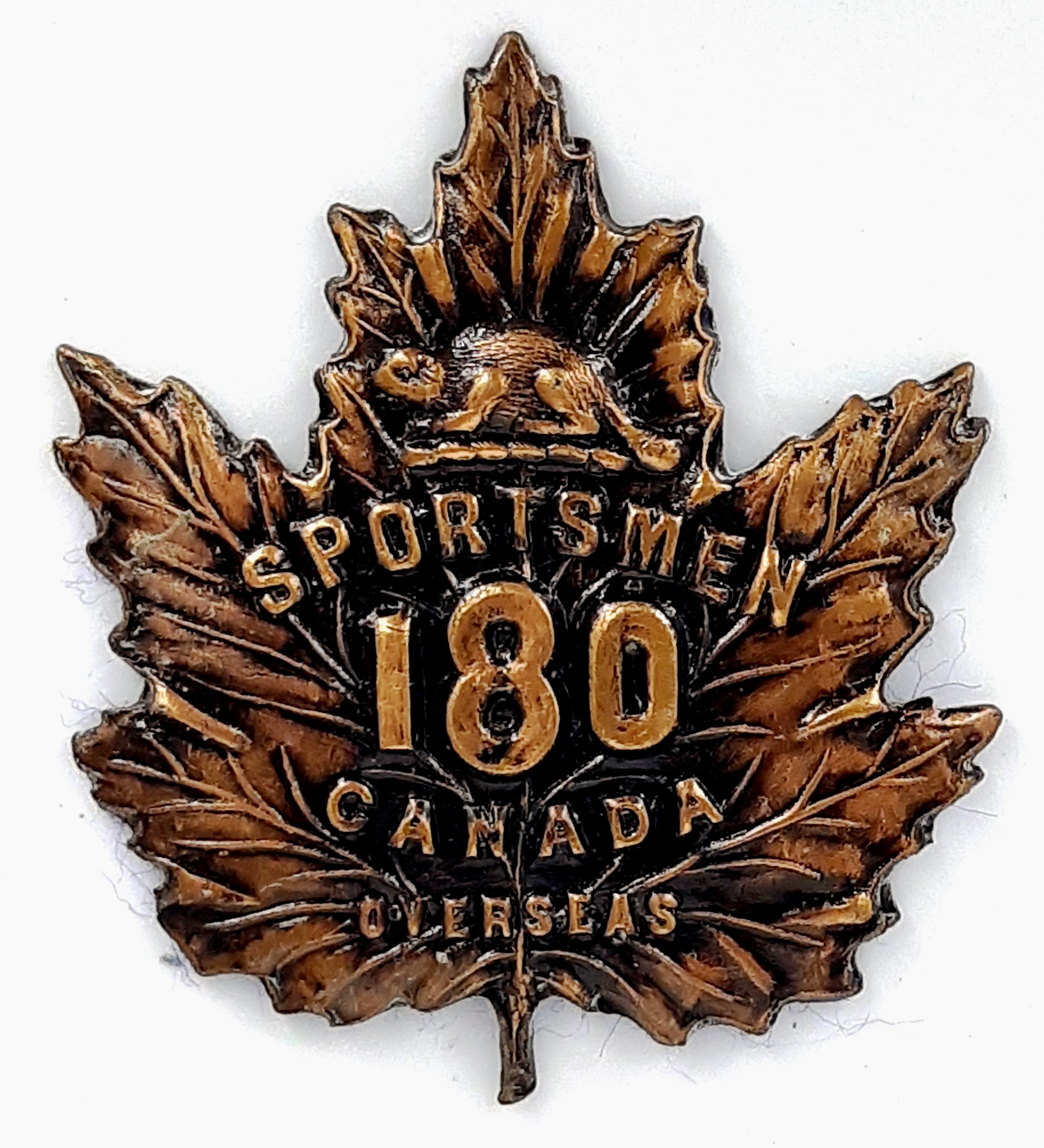 The 180th (Toronto Sportsmen) Battalion was recruited and mobilized at Toronto under General Order 69 of 15 July 1916 by the 110th Irish Regiment, this one of a number of Militia Regiments raised after the start of the First World War. Others include the 55th Irish Canadian Rangers and 58th (Westmount) Rifles at Montreal, the70th Hull Regiment, the 108th at Berlin, Ontario which shortly after changed the name to Kitchener, andthe 109th Regiment at Toronto. The 180th Battalion embarked for England 15 November 1916 under command of Lieutenant-Colonel R.H. Greer (Honorary rank), with a strength of 31 officers and 833 otherranks where in January 1917 it amalgamated with other Toronto battalions to form the 3rd Reserve Battalion. The 180th Canadian Infantry Battalion was disbanded under General Order 63 of 1 June 1917.
