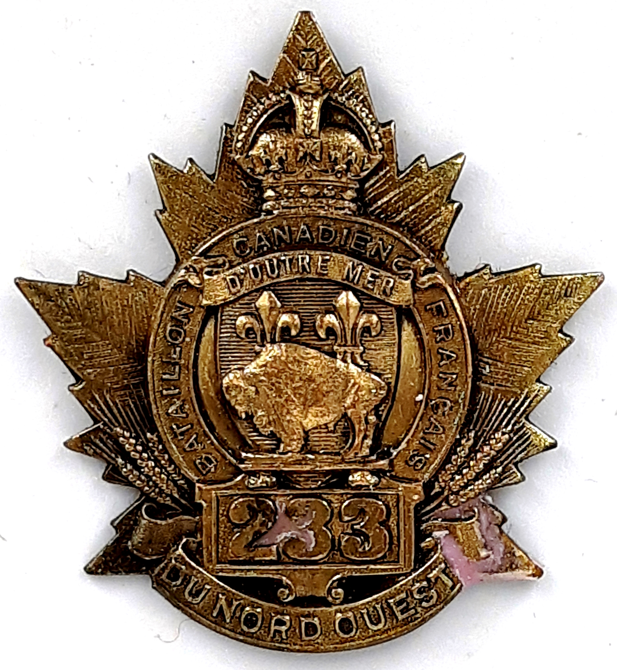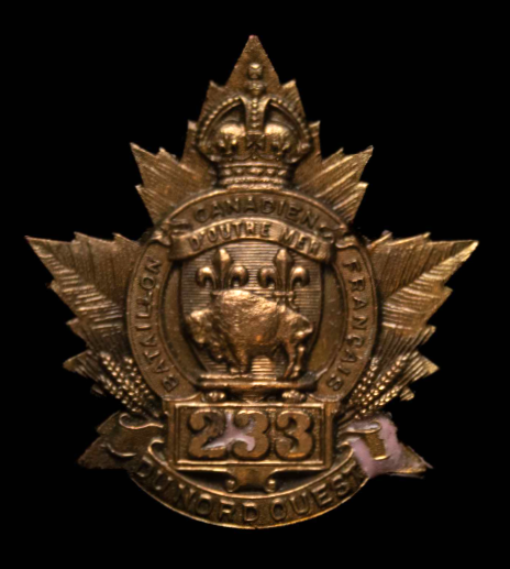 233rd Battalion (Canadiens Français du Nord-Ouest). Authorized on 15 July 1916, disbanded on 15 September 1920.
