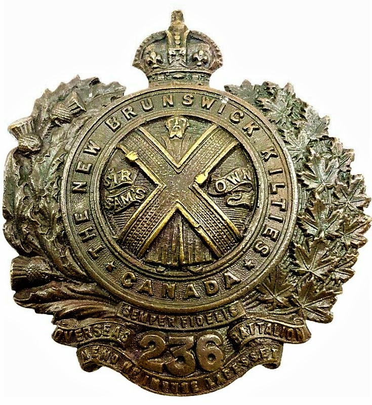 236th Battalion (New Brunswick Kilties). Authorized on 15 July 1916, disbanded on 30 August 1920.
