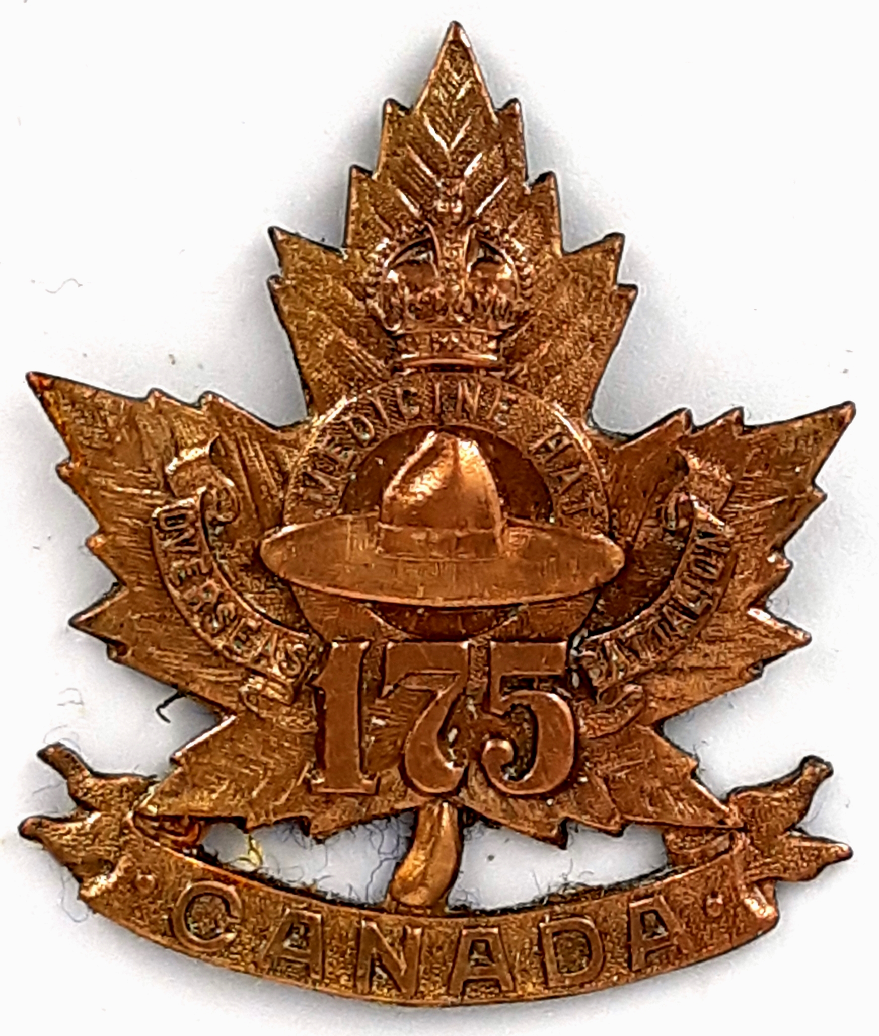 The 175th (Medicine Hat) Battalion was recruited in the southern Alberta region by the 21st Alberta Hussars and the 23rd Alberta Rangers with mobilization headquarters at Medicine Hat under General Order69 of July 15th 1916 these regiments previously having contributed 78 volunteers to the 6th Battalion on its formation at Camp Valcartier in August 1914, and later also providing volunteers to the 31st, 113th, 151st, 187th and 191st Battalions. The 175th Battalion sailed for England October 4th 1916 with 30 officers and847 other ranks under command of Lieutenant-Colonel N. Spencer (Honorary rank), where in January 1917 the battalion amalgamated with other CEF battalions raised in Alberta then in England to form the 21st Reserve Battalion. The 175th Canadian Infantry Battalion was disbanded July 17th 1917 under GO.82 of 1 June 1918.