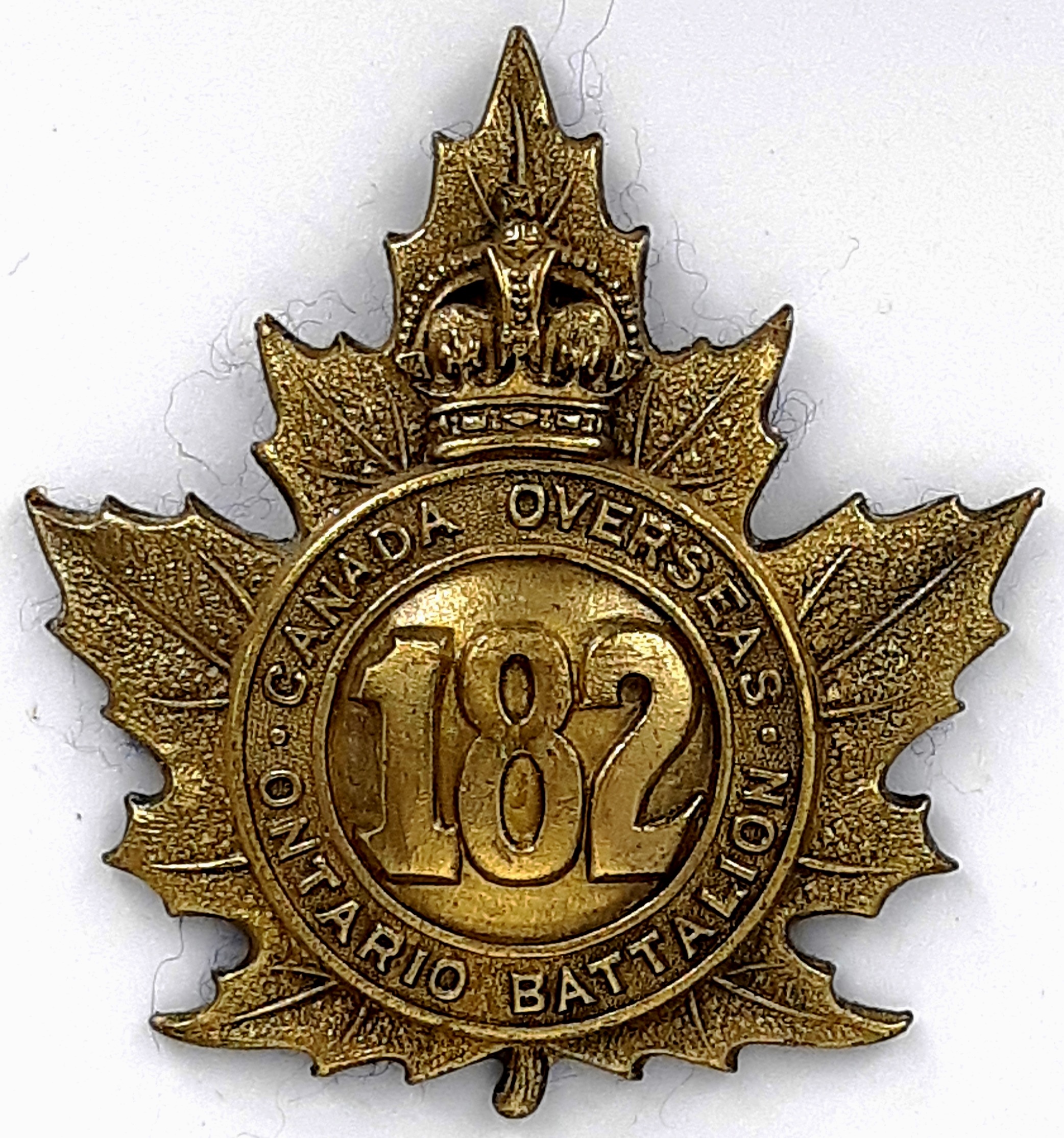 The 182nd (Ontario County) Battalion was recruited in Ontario County with mobilization headquarters at Whitby under General Order 69 of 15 July 1916 by the 34th Ontario Regiment this regiment previously having contributed 133 volunteers to the 2nd Battalion on its formation at Camp Valcartier in August 1914 and later raising the 116th Battalion. The 182nd Battalion sailed for England on 3 May 1917 under command of Lieutenant-Colonel A.A. Cockburn (34th Ontario Regiment), with a strength of nine officers and 280 other ranks where it was absorbed into the 2nd Reserve Battalion, and reinforcing the 116th Battalion serving with the Canadian Corps on the Western Front. Being fully depleted of all ranks the 182nd Canadian Infantry Battalion was disbanded effective 1 September 1917 under General Order 82 of 1 June 1918.