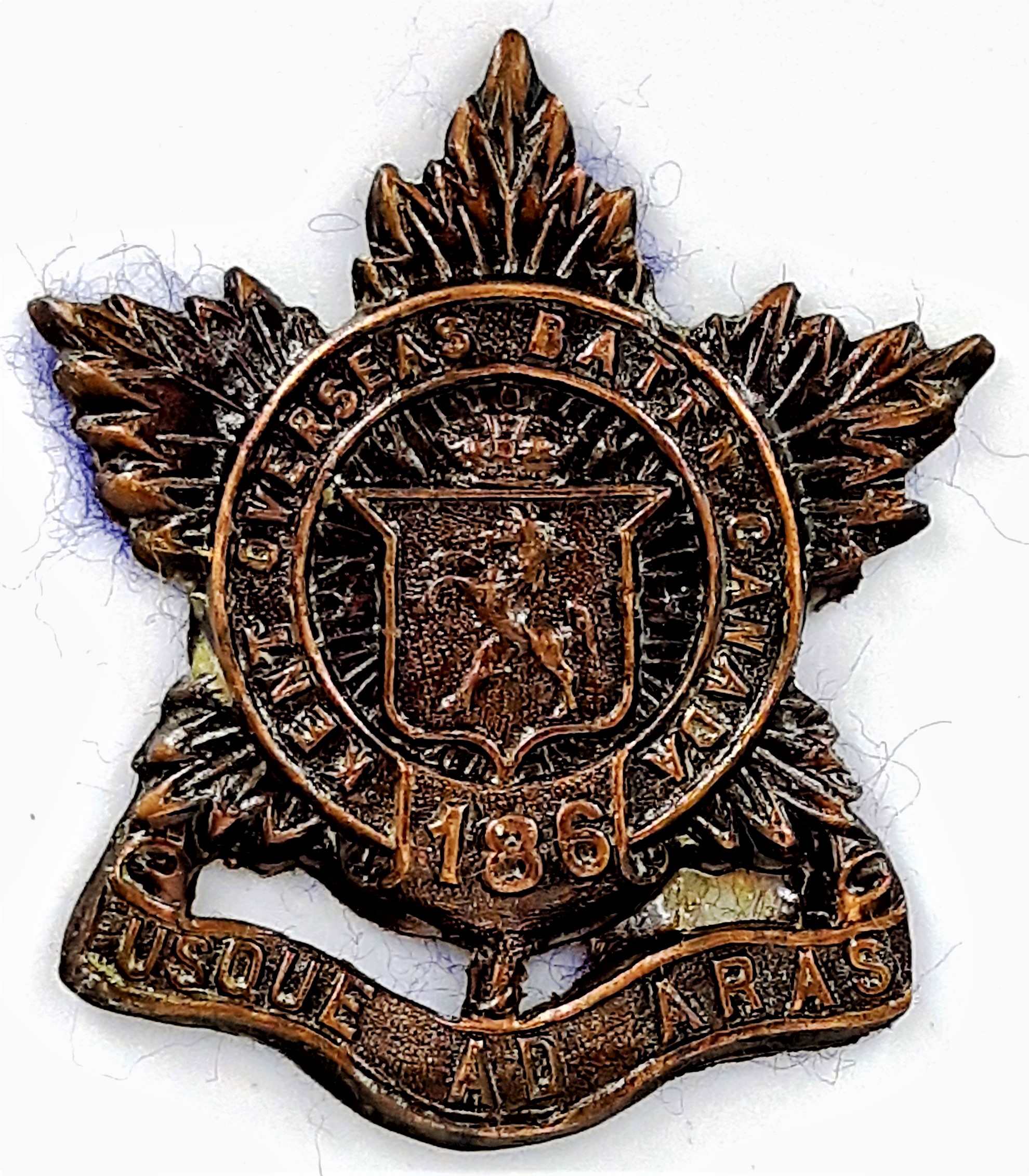The 247th (Victoria and Haliburton) (Diehard’s) Battalion began recruiting at Peterborough, West Hastings and Gavin township with mobilization headquarters at Peterborough August 15th 1916 under General Order 48 of 1 May 1917. The regiment was raised by the 45th Victoria and Halliburton Regiment the designation being changed from the 45th Victoria Regiment July 1st 1917. Victoria and Haliburton was the seat held by Sir Sam Hughes in the Canadian Parliament. The 45th Victoria Regiment had previously provided 45 volunteers to the 2nd Battalion on its formation at Camp Valcartier in August 1914 and later raised the 109th Battalion. The 247th Battalion was raised under command of Lieutenant-Colonel C.H. Ackerman (57th Peterborough Rangers) but was only able to raise a minimal number of recruits these being merged into the 236th Battalion (Sir Sam’s Own), which embarked for England 3 May 1917. The 247th Canadian Infantry Battalion was disbanded effective under General Order 82 of 1 June 1918.