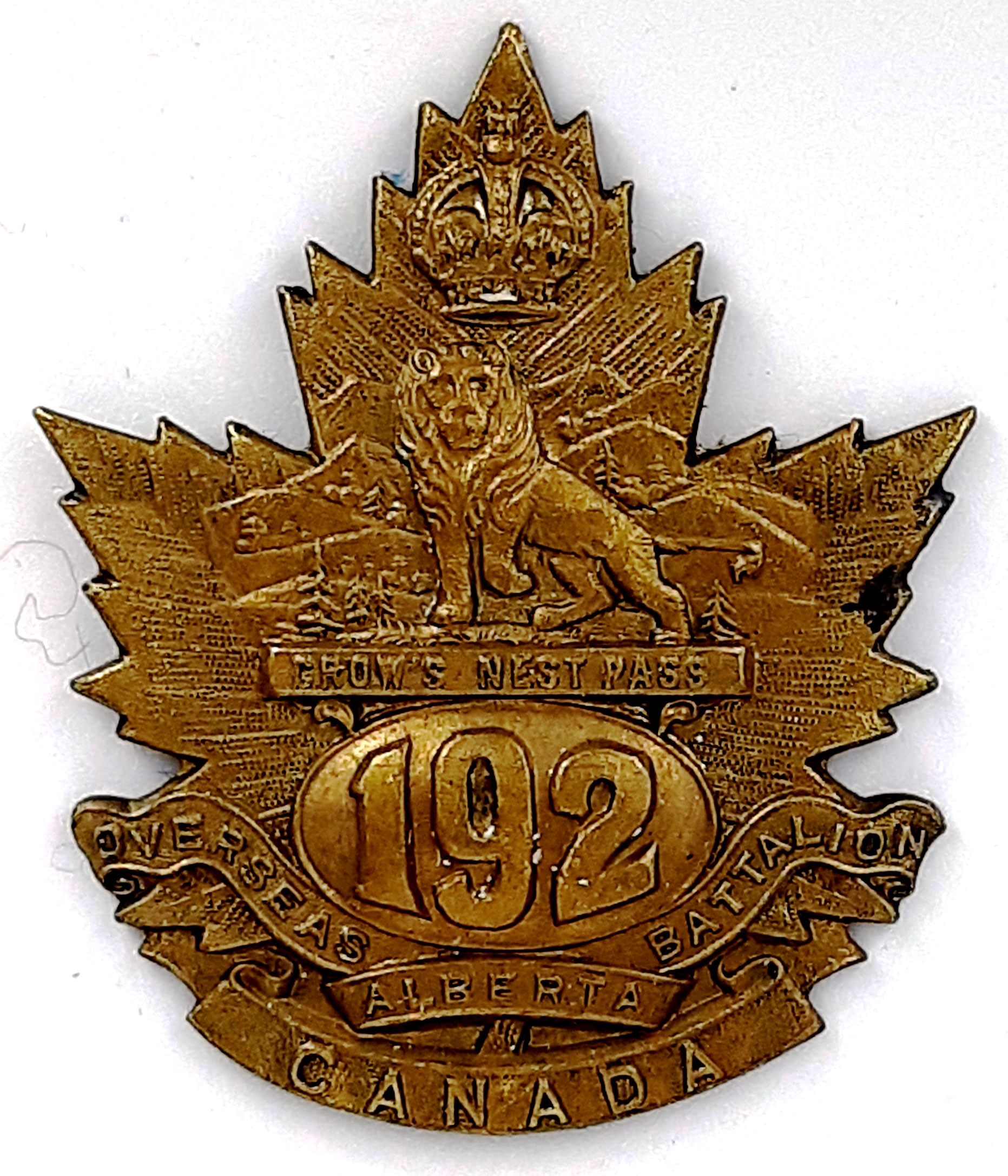 192nd Battalion (Crow’s Nest Pass). Authorized on 15 July 1916, disbanded on 12 Oct 1917.