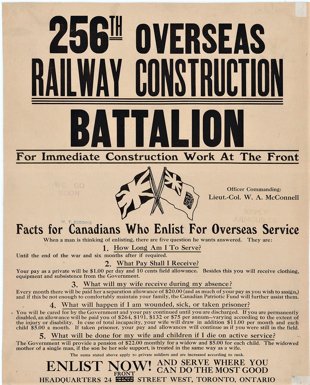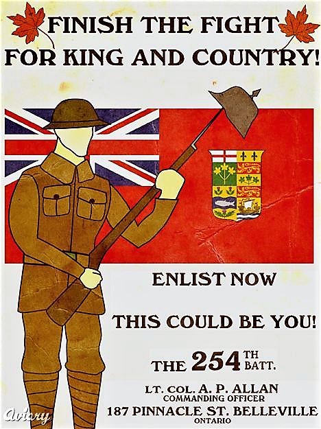 254th Battalion (Quinte’s Own). Authorized on 1 May 1917, disbanded on 15 September 1917.
