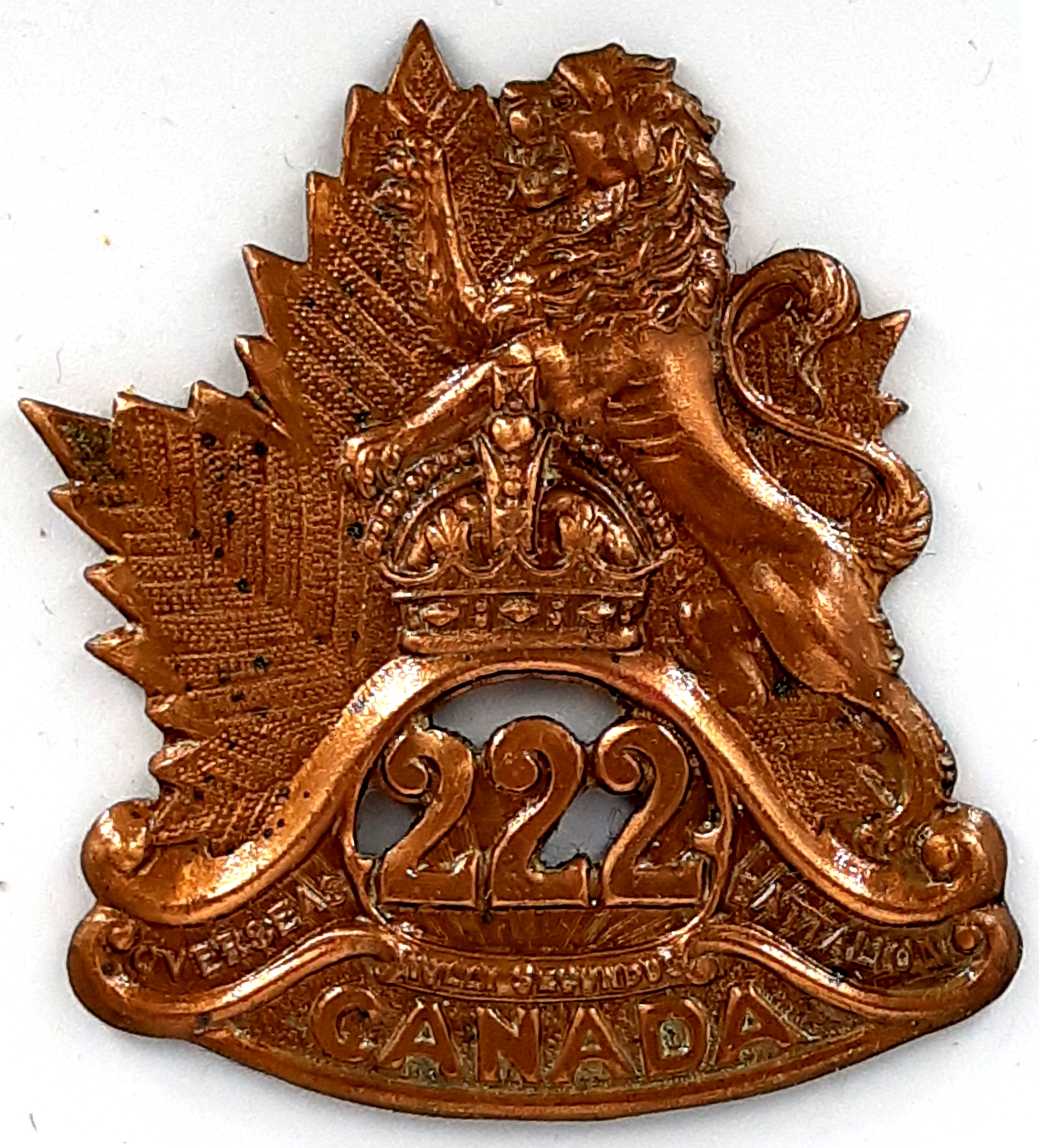The 163rd (Canadiens Français) Battalion was recruited in the Province of Quebec on 10 December 1915with mobilization headquarters at Montreal under General Order 151 of December 22nd 1915. The battalion was raised by the 54th Regiment Carabiniers de Sherbrooke this regiment previously having provided 113 volunteers to the 12th Battalion on its formation at Camp Valcartier in August 1914. The 163rd Battalion embarked for Bermuda on 24 May 1916 in relief of the 38th Battalion which had been serving on Garrison Duty since 1915. The 163rd Battalion returned to Canada prior to embarking for England on 27 November 1916 under command of Lieutenant-Colonel H. Des Rosiers (65th Carabiniers Mont-Royal), with a strength of 38 officers and 822 OR’s. In January 1917 the 163rd Battalion merged with the 41st, 57th, 69th Battalions to form the 10th Reserve Battalion this under command of Lieutenant-Colonel H. Des Rosiers. This serving as the reinforcing battalion for the 22nd Battalion the only French speaking battalion of the 48 serving with the Canadian Corps on the Western Front. The 163rd Canadian Infantry Battalion was disbanded effective 17 September 1917 under General Order 82 of 1 June 1918.