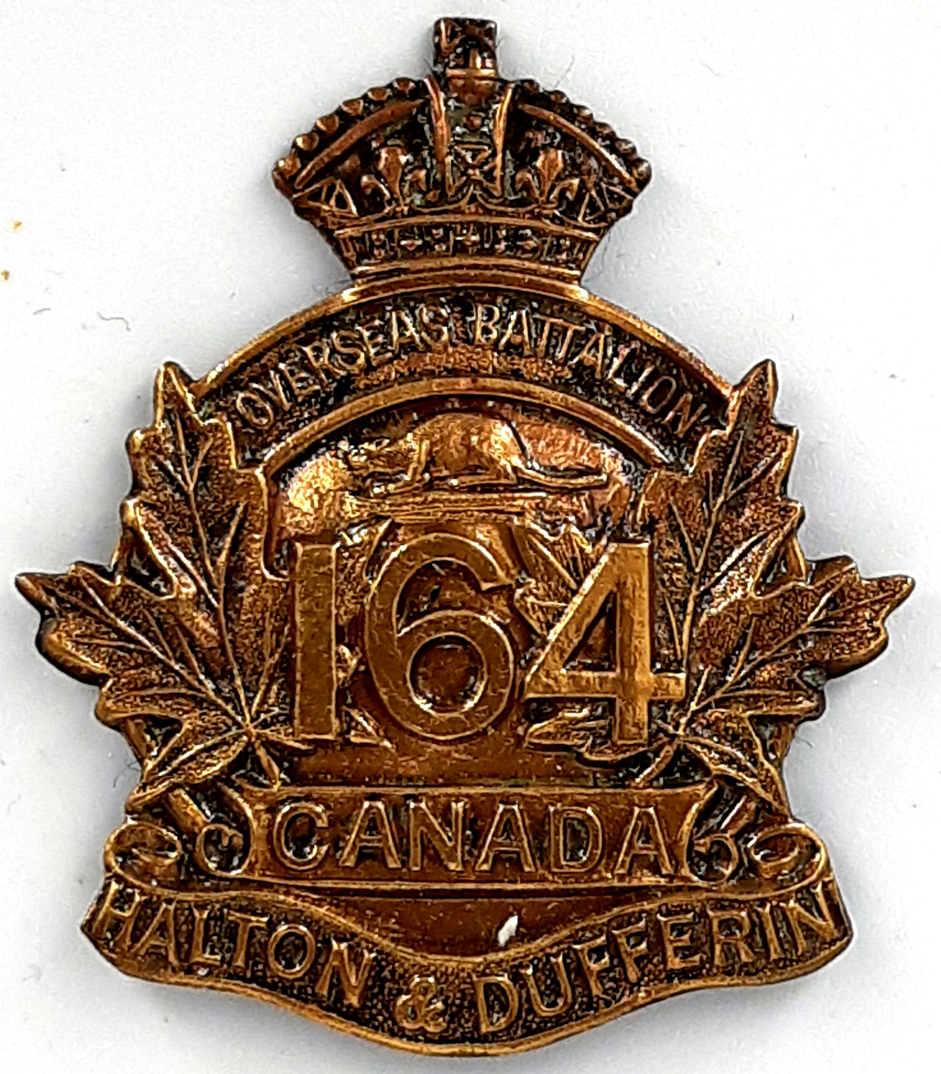 164th Battalion (Halton and Dufferin). Authorized on 22 December 1915, disbanded on 29 November 1918.
