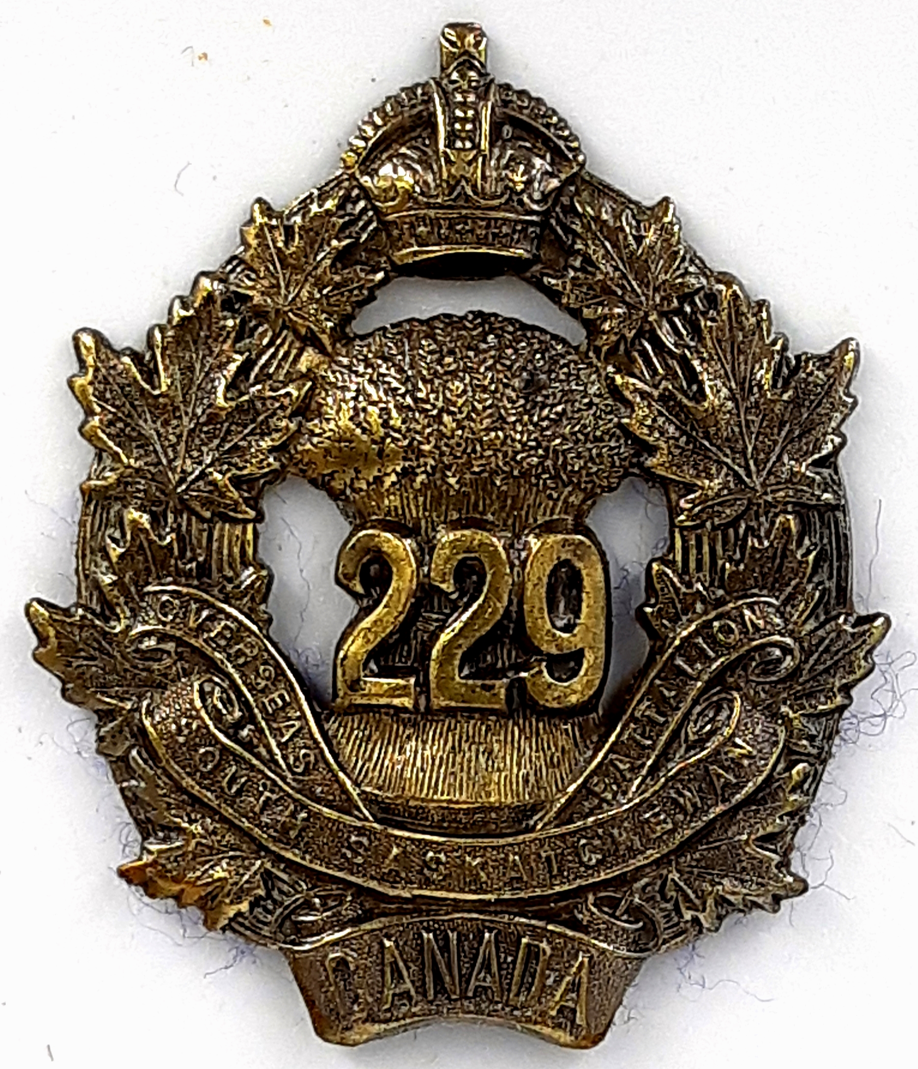 The 229th (South Saskatchewan) Battalion was recruited in southern Saskatchewan with mobilization headquarters at Moose Jaw under General Order 69 of July 15th 1916. The 229th Battalion embarked for England on 18 April 1917 under command of Lieutenant-Colonel H.D. Pickett (60th Rifles of Canada), with a strength of 17 officers and 426 other ranks where the battalion was absorbed into the 15th Reserve Battalion. Being fully depleted of all ranks the 229th Canadian Infantry Battalion was disbanded effective 15 September 1917 under General Order 82 of 1 June 1918.