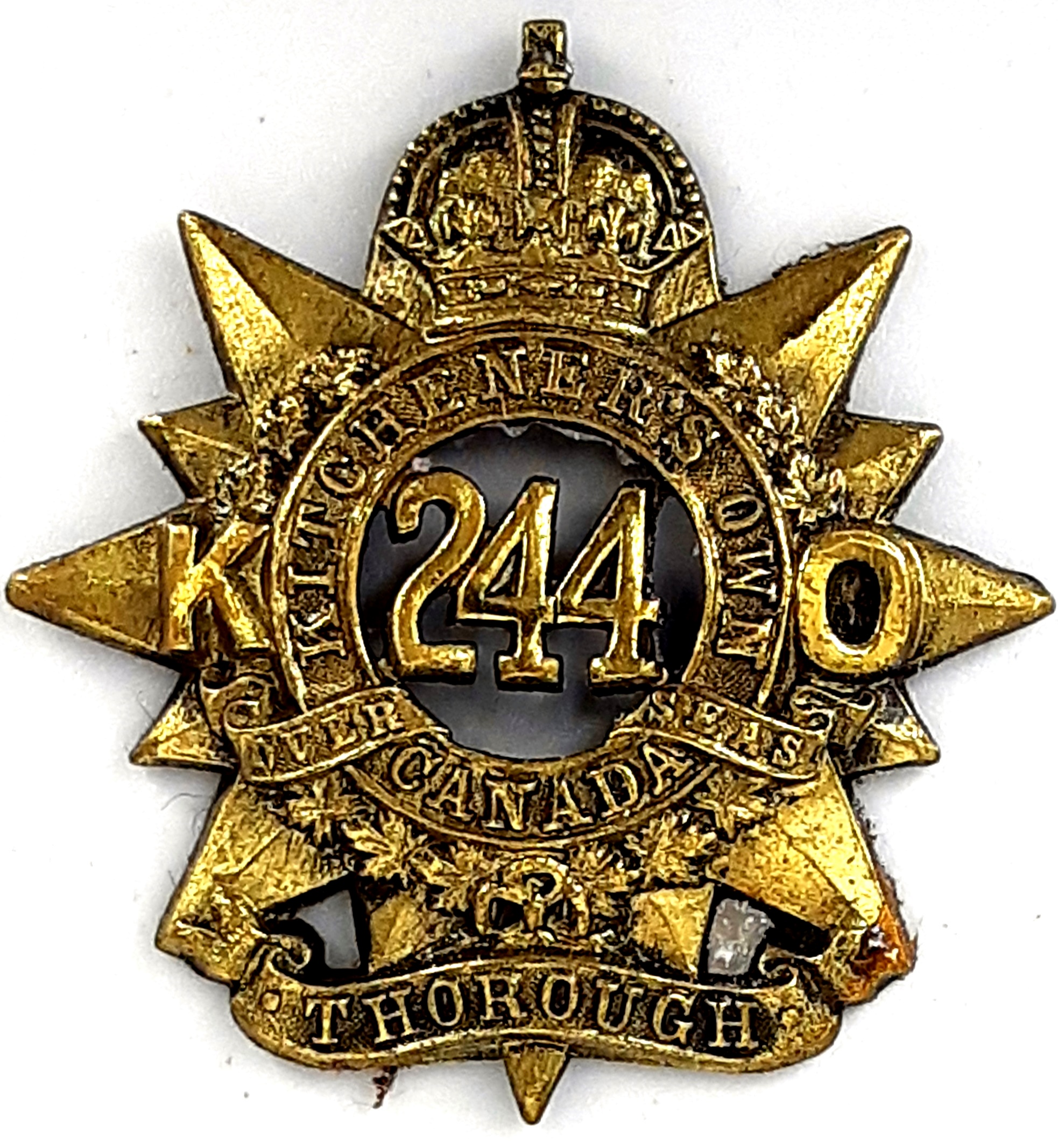 244th Battalion (Kitchener’s Own). Authorized on 15 July 1916, disbanded on 17 July 1917.