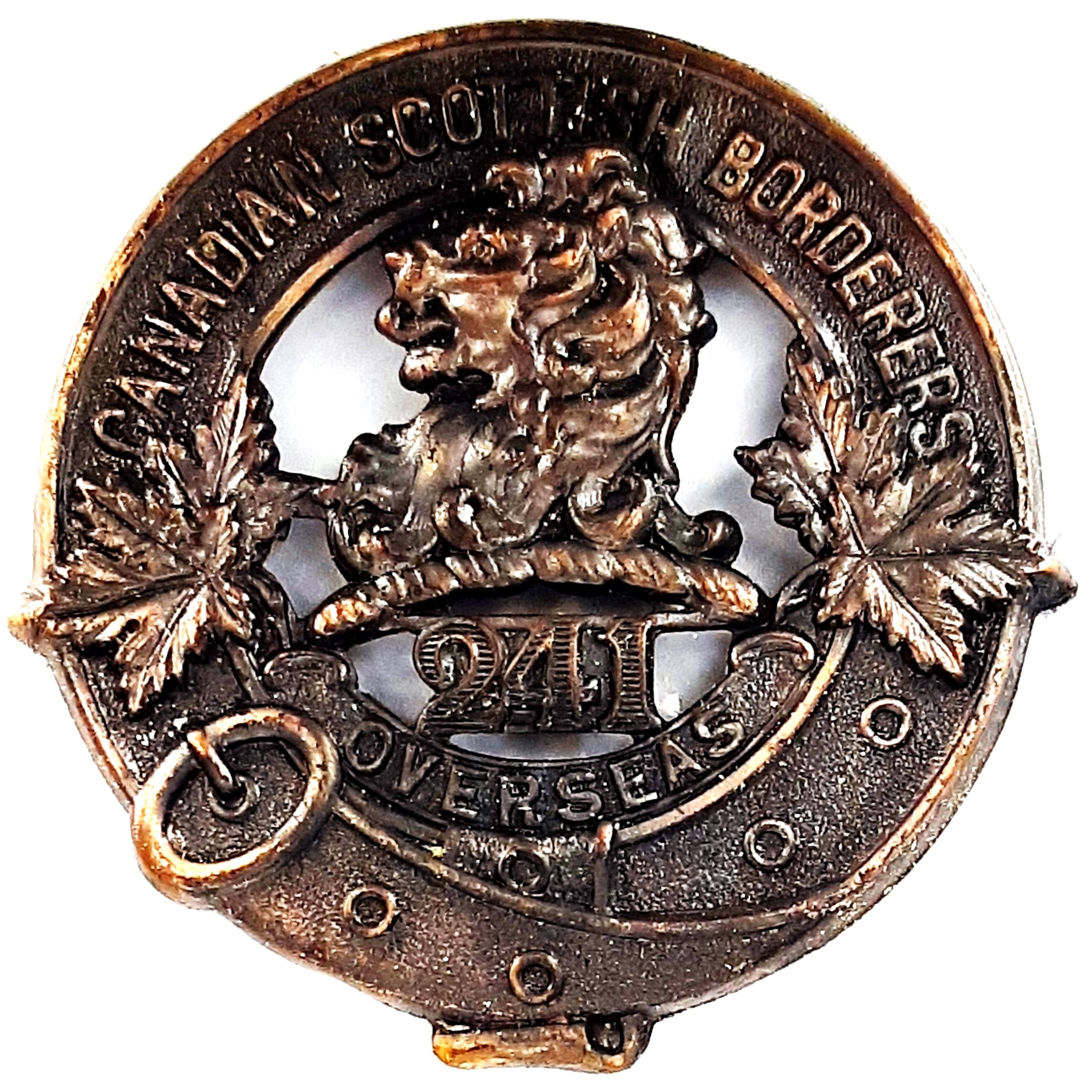 The 241st (Canadian Scottish Borderers) Battalion was raised by the 21st Essex Fusiliers from recruits of Scottish ancestry from South Western Ontario and Michigan with mobilization headquarters at Windsor, Ontario June 2nd 1916 being authorized under General Order 69 of July 15th 1916. The regiment previously having provided 229 volunteers to the 1st Battalion on its formation at Camp Valcartier in August 1914 and providing volunteers to the 18th Battalion and later raised the 99th Battalion. The 241st Battalion embarked for England on 29 April 1917 with 21 officers and 625 OR’s under command of Lieutenant-Colonel W.L. McGregor (21st Essex Fusiliers), where the battalion was absorbed into the 12th Reserve Battalion. Being fully depleted of all ranks the 241st Canadian Infantry Battalion was disbanded effective 1 September 1917 under General Order 82 of 1 June 1918.