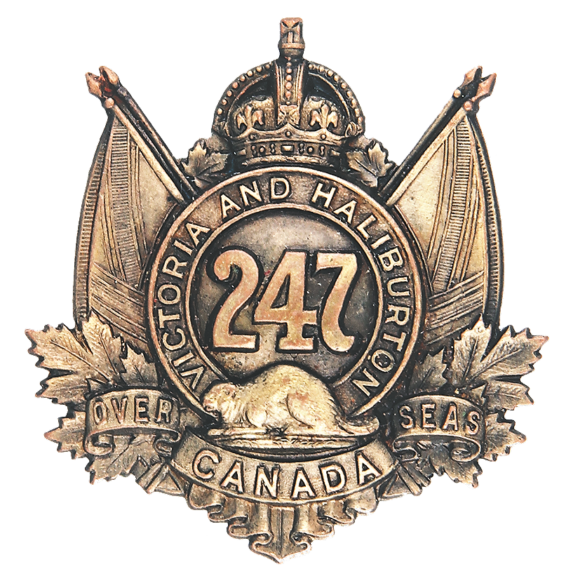 247th Battalion (Victoria & Haliburton). Authorized on 1 May 1917, disbanded on 11 April 1918.