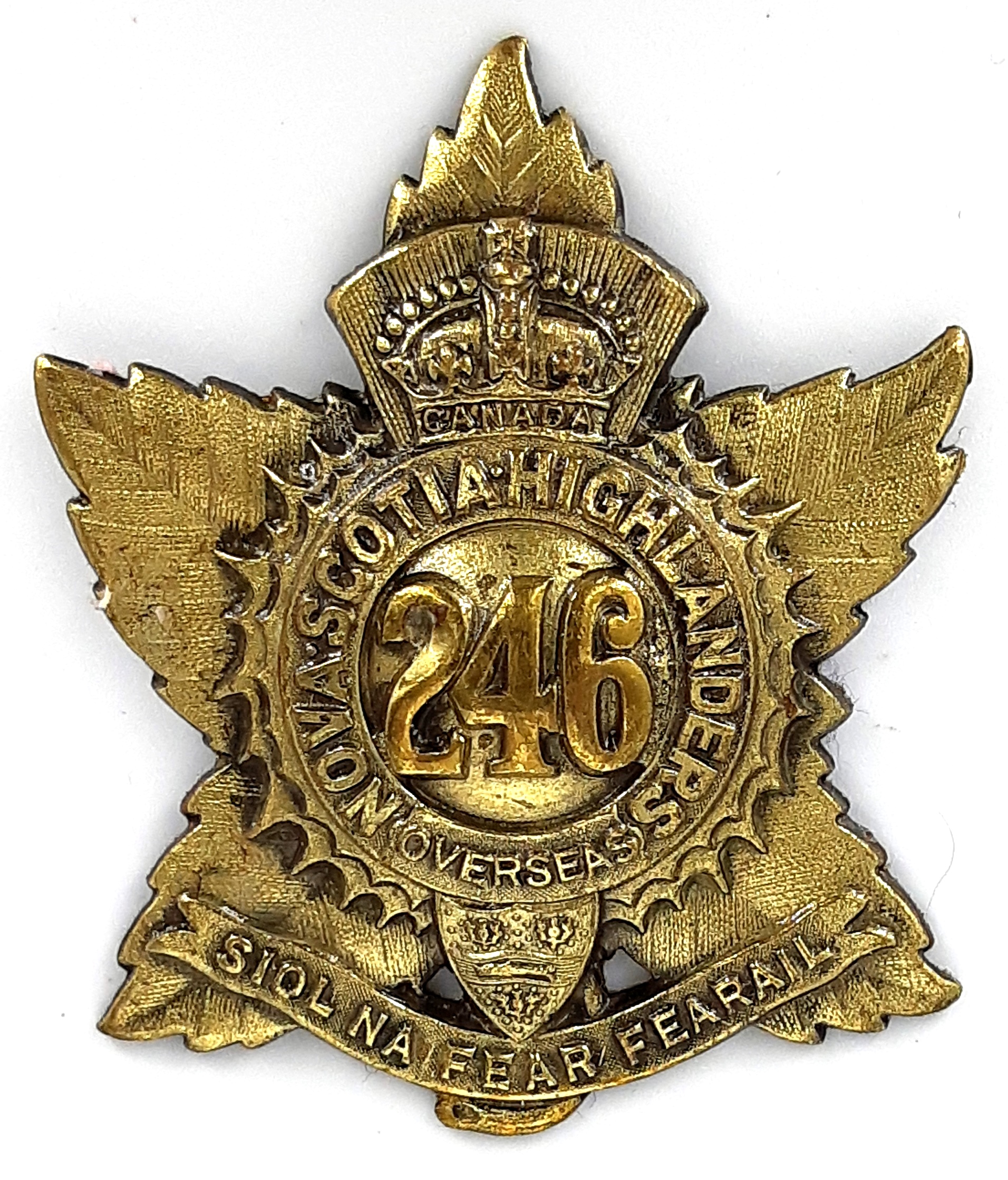 246th Battalion (Nova Scotia Highlanders). Authorized on 1 May 1917, disbanded on 11 April 1918.