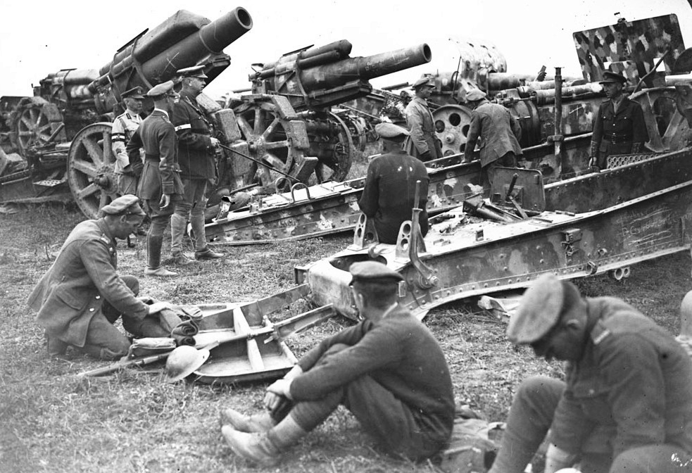German guns inspected by Lieutenant-General Sir Arthur W. Currie, Amiens, France, in August 1918.
