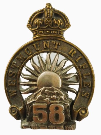 The 58th Regiment (Westmount Rifles) was authorized under General Order 2 of November 1914 as a four company regiment of infantry with headquarters at Westmount, Quebec. In 1917 the regiment was redesignated the 58th Regiment and later in the war became the regimental depot for the 14th Battalion.  In the 1920 post-war reorganization of the Canadian Militia, the 58th Regiment was disbanded and immediately reconstituted as the Royal Montreal Regiment.