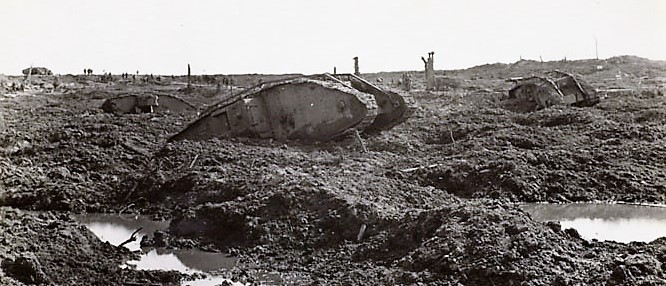 British tanks knocked out and mired at Passchendaele, November 1917.