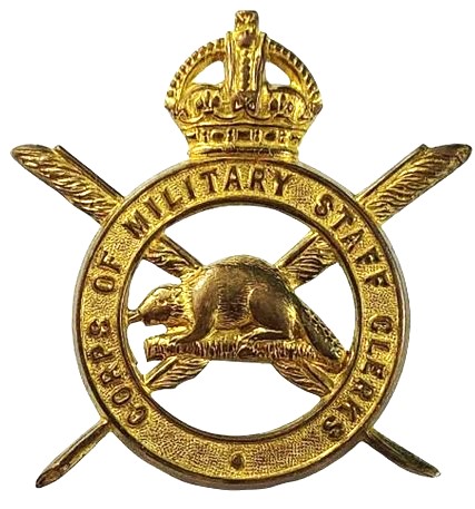 The Corps of Military Staff Clerks was established as a Corps of the Permanent Canadian Militia in 1905, with a single detachment in two sections located at Ottawa. One as the Corps of Military Staff Clerks and the second The Staff Orderly Service. The uniform of the Corps being authorized under General Order 125 of July 1907. The Corps remained a tiny regular force unit until the First World War when it was greatly expanded to meet the needs of both the Militia in Canada and the CEF overseas. After the First World War, the corps was again reduced to just 110 personnel. The Corps of Military Staff Clerks was disbanded on 30 September 1946.