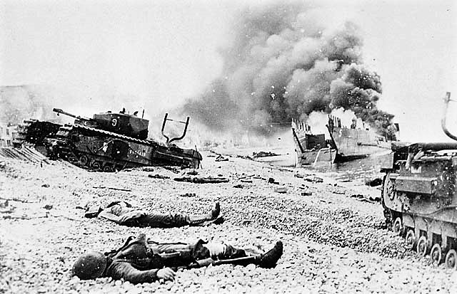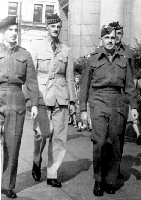 At a gathering of 3 Int Trg Coy personnel in Halifax in the fall of 1973, Col Douthwaite spoke to the author about the Normandy landing. On driving off the Landing Craft Tank (LCT), his jeep sank in moderately deep water. He stood on his tiptoes while the driver held his breath, and they drove on up the beach. In the first firefight they got into, one of his team killed a German who was about to shoot at Raefe, by firing at him with a Portable Infantry Anti-tank launcher (PIAT). The advance party set up a temporary HQ at Graye-sur-Mer, and was joined by the remainder of the Section on 13 June. Their immediate task was to establish control over civilian movement.