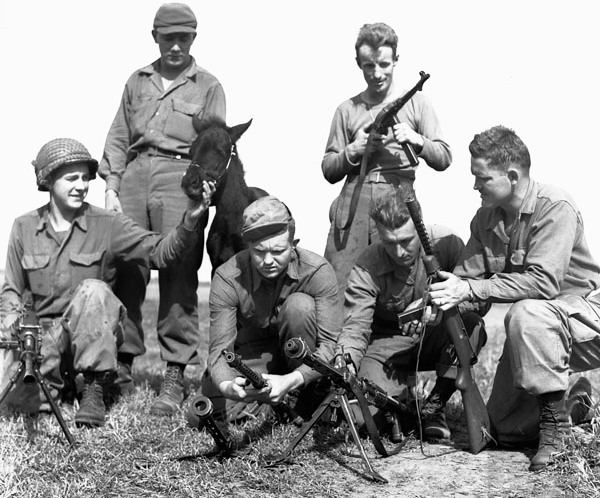 First Special Service Force paratroopers with captured Italian weapons, Anzio, Italy, 20 Apr 1944.