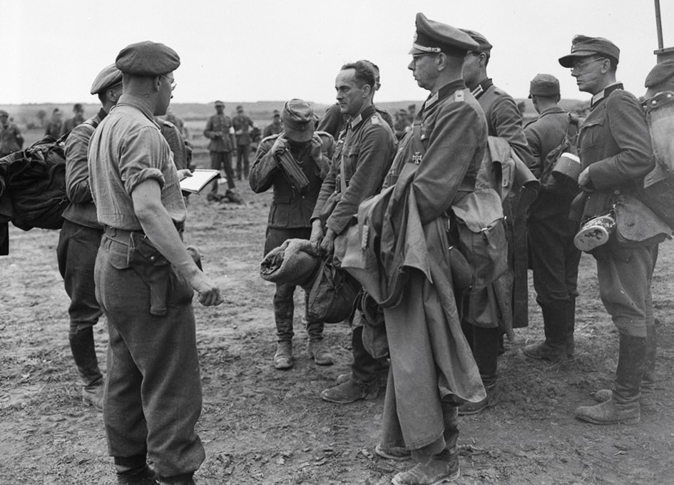 German prisoners being interrogated by a Field Security Team, while awaiting transport, 23 August 1944.