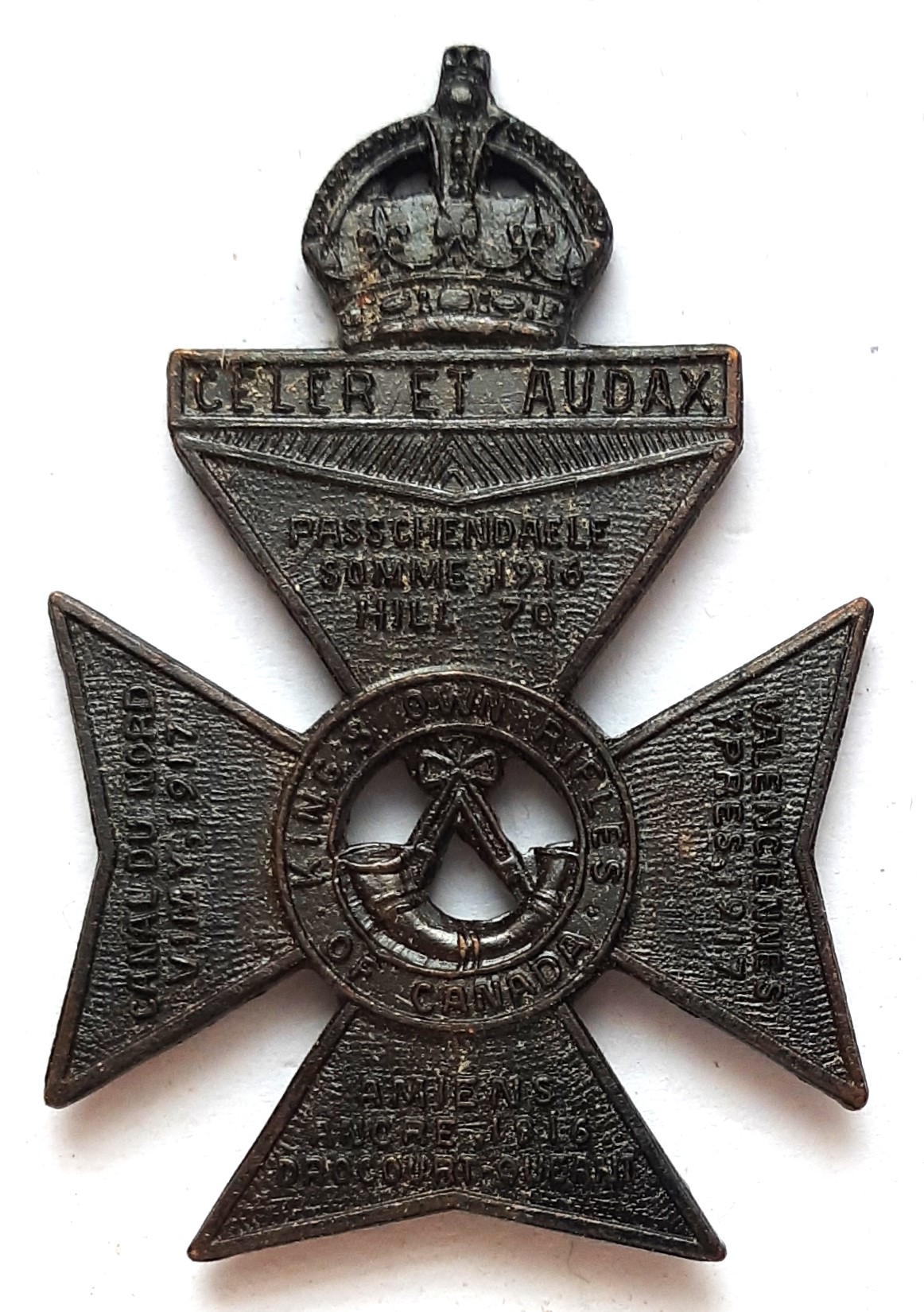 The Kings Own Rifles of Canada originated as a ‘regiment of infantry’ in 1905. In 1907 the unit was designated the 95th Regiment and in 1909 the 95th Saskatchewan Rifles. In 1920 the unit amalgamated with the 60th Rifles of Canada and was designated the South Saskatchewan Regiment. In 1924 it was designated The Kings Own Rifles of Canada. In 1949 the unit became the 20th Saskatchewan Armoured Regiment and in 1954 The Saskatchewan Dragoons.