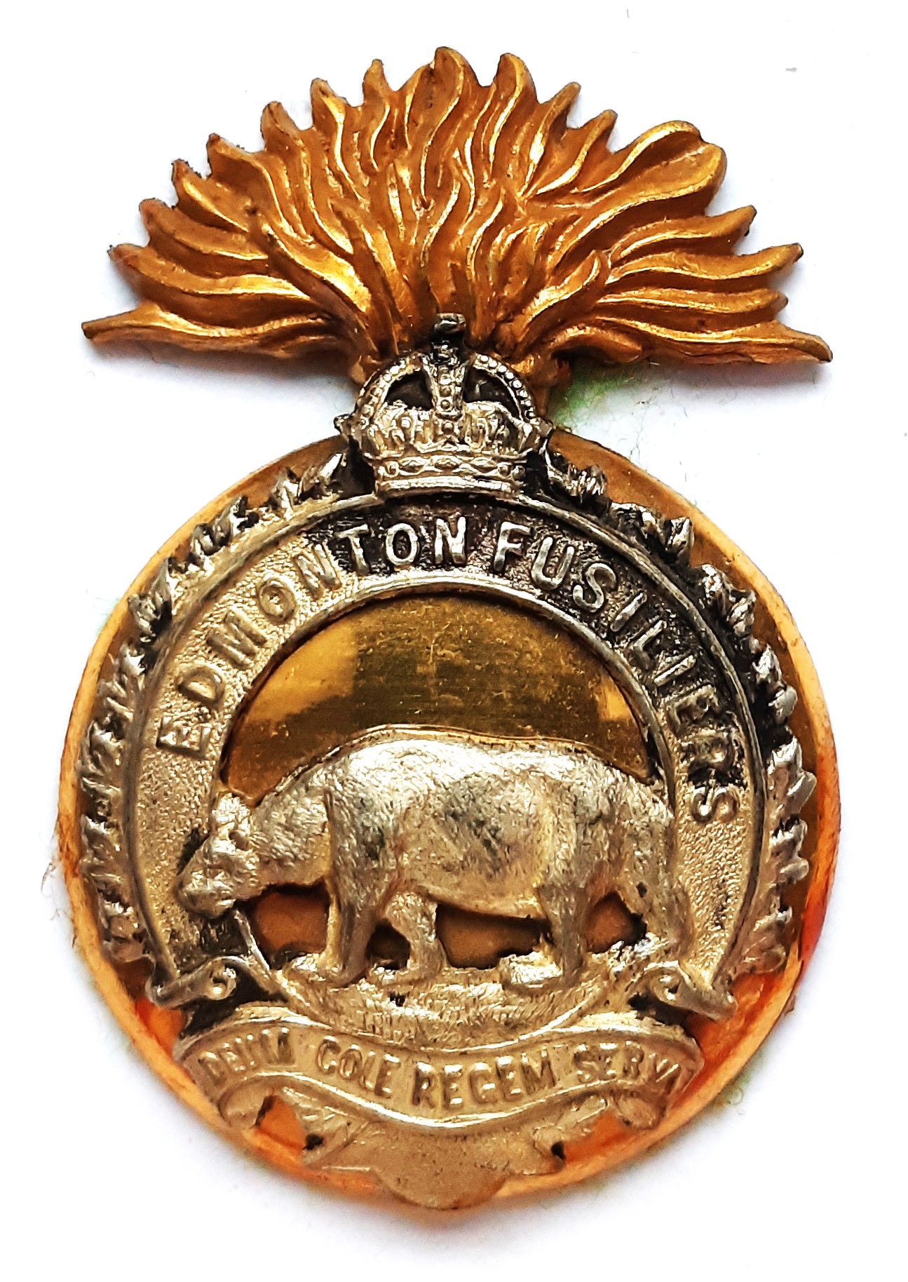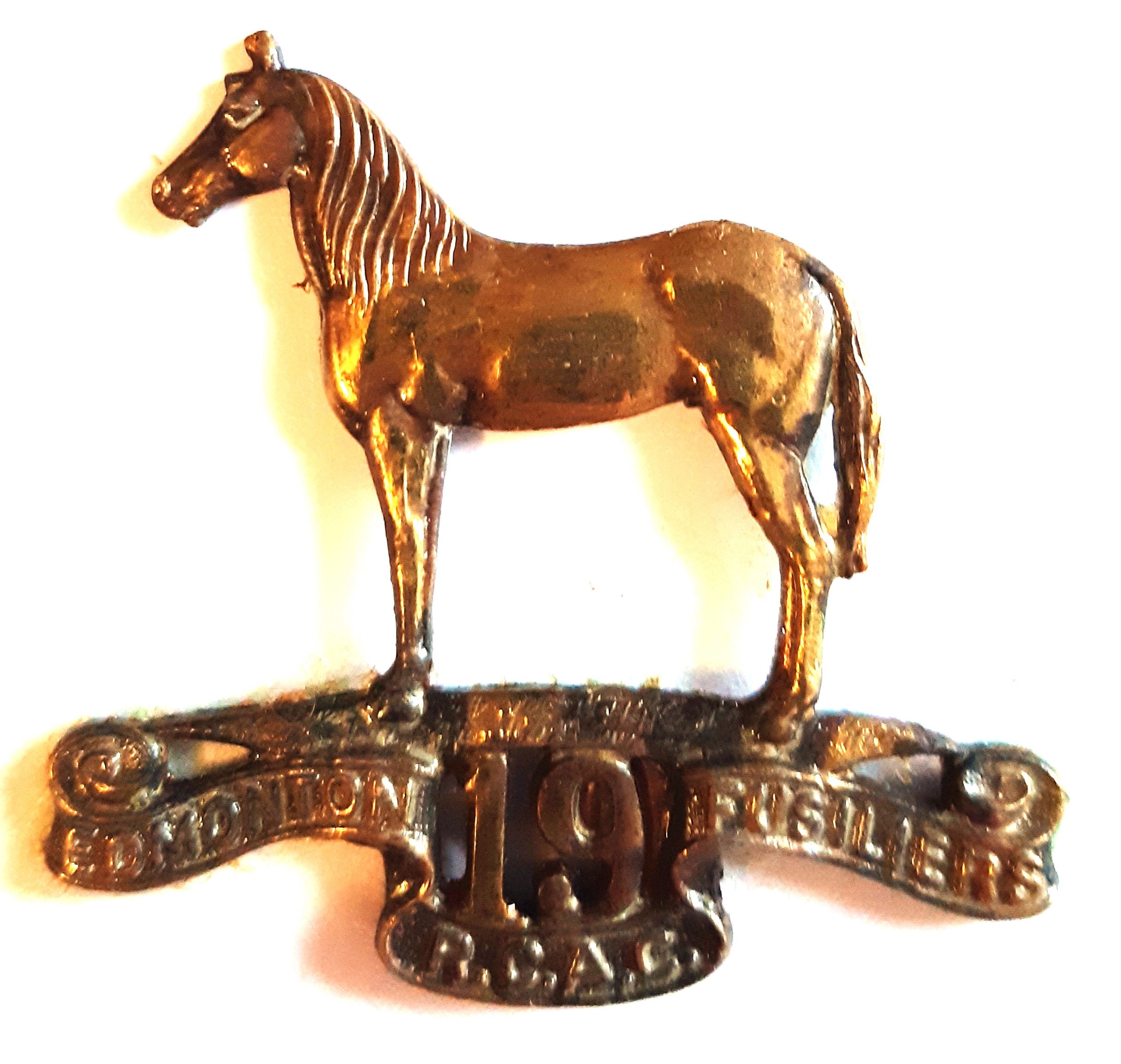 The Edmonton Fusiliers originated in 1908 as the 101st Regiment and was designated the 101st Regiment Edmonton Fusiliers in 1909 and the Edmonton Regiment in 1920. In 1924 the unit was separated unit two regiments including the Edmonton Fusiliers. In 1946 The Edmonton Fusiliers amalgamated with 19th Alberta Dragoons.