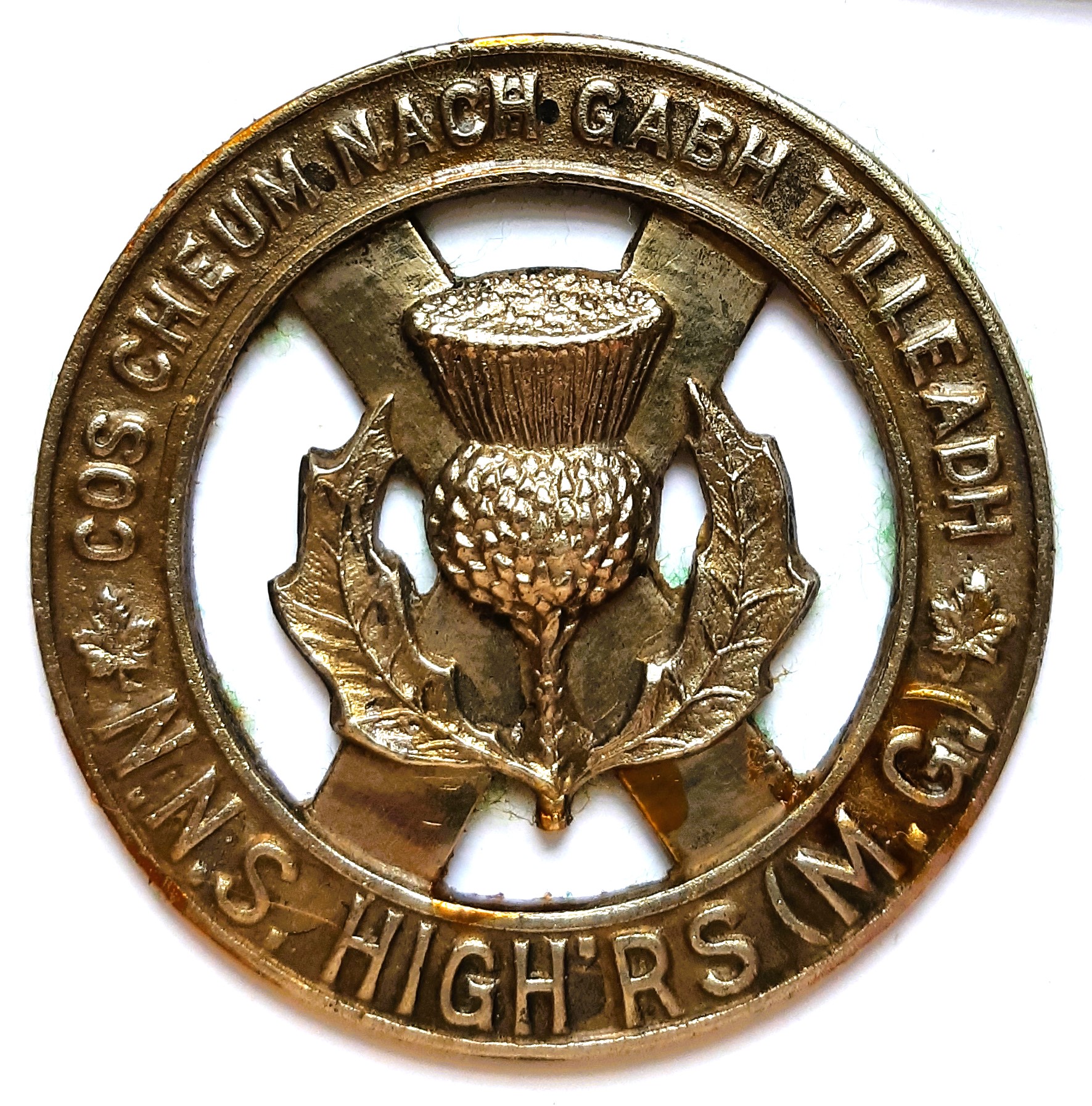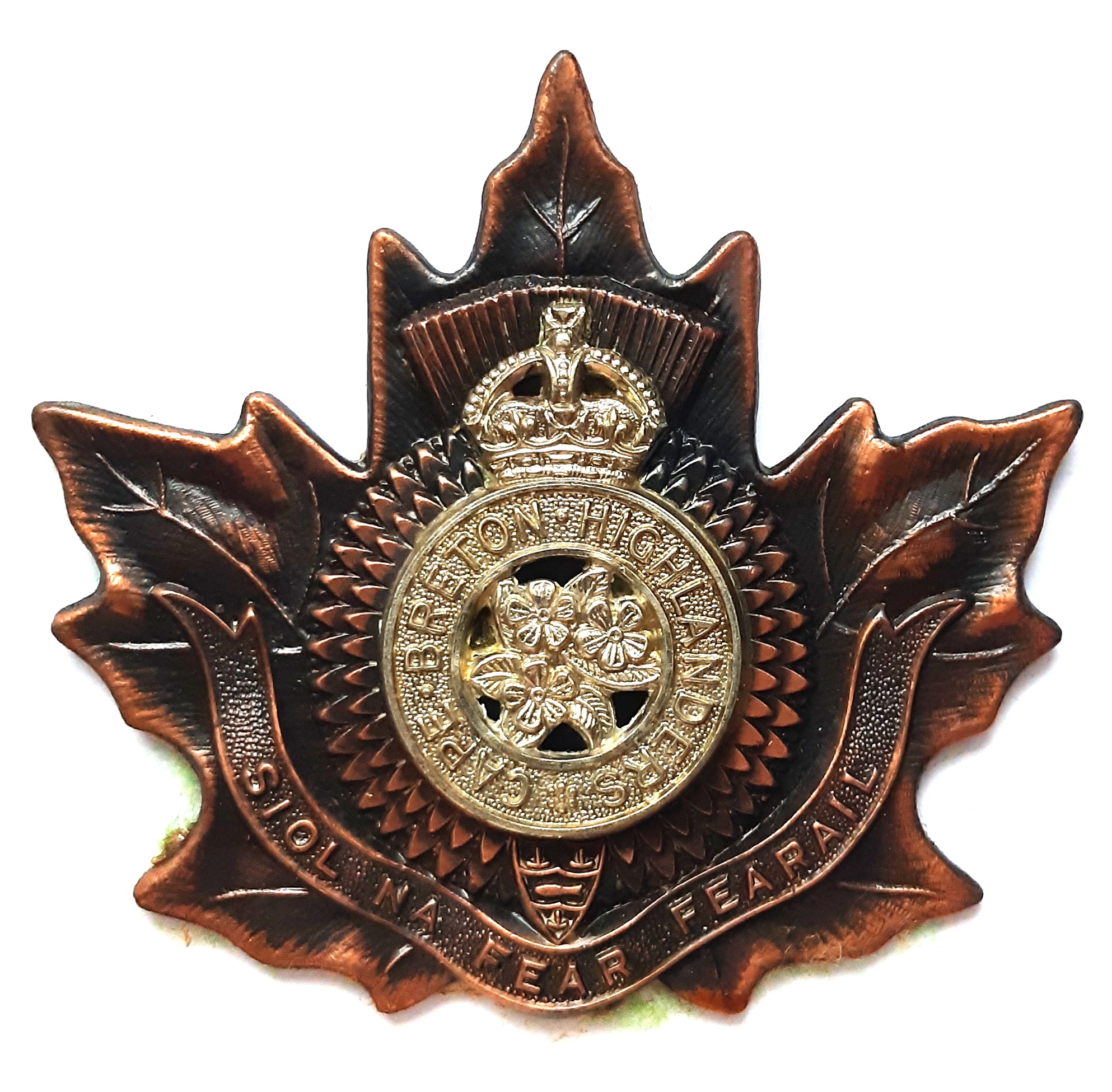 The North Nova Scotia Highlanders (Machine Gun) was formed in 1871 when the Cumberland Provisional Battalion of Infantry was authorized, and designated the Cumberland Highlanders in 1927. The unit amalgamated with the Colchester and Hants regiment and “C” company of the 6th machine gun battalion and designated the North Nova Scotia Highlanders in 1936. Later the unit amalgamated and became the Nova Scotia Highlanders (1946). “cos cheum nach gabh tilleadh”- “Our footsteps will not allow us to go backwards,” or “No retreating footsteps.”