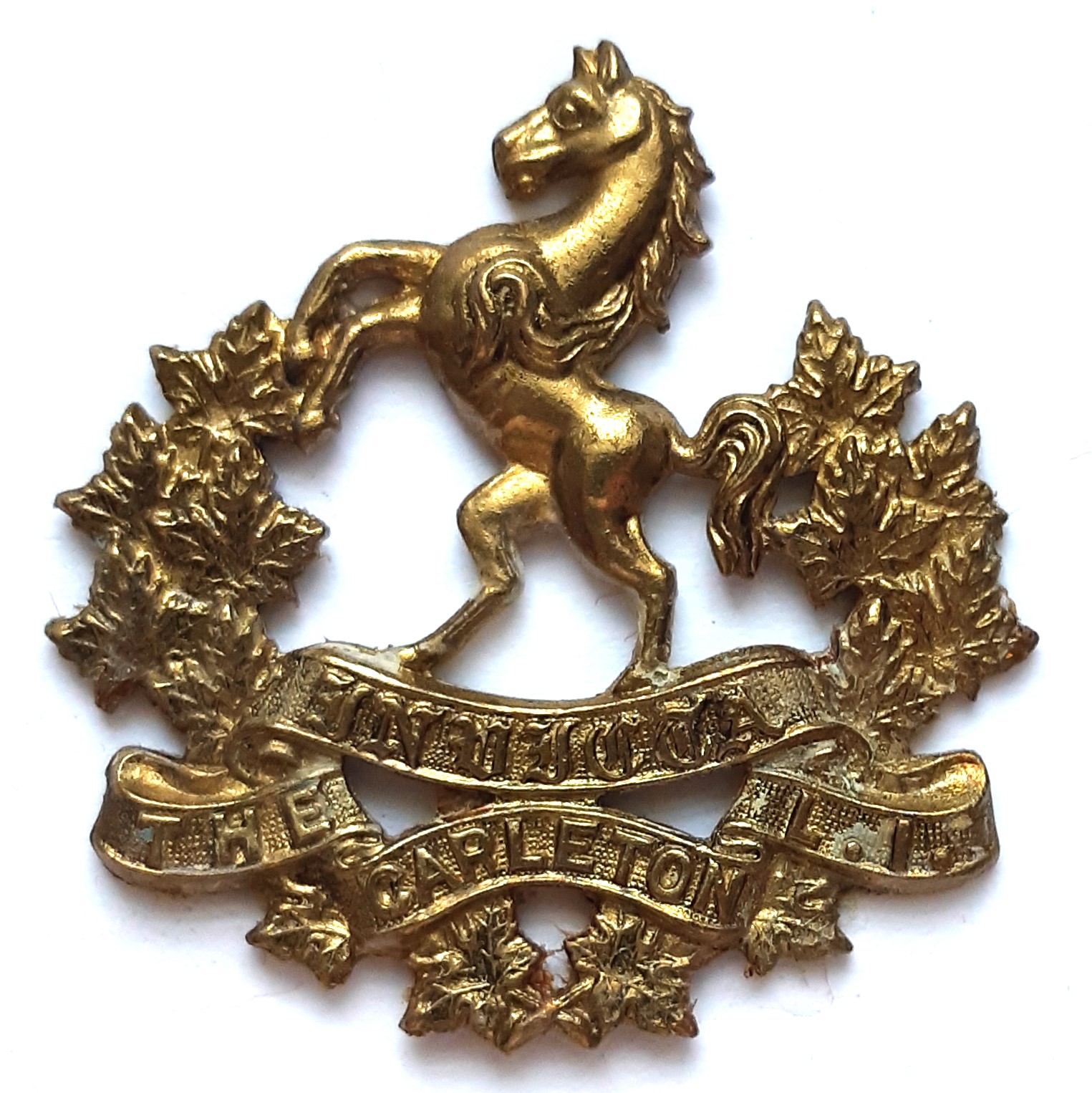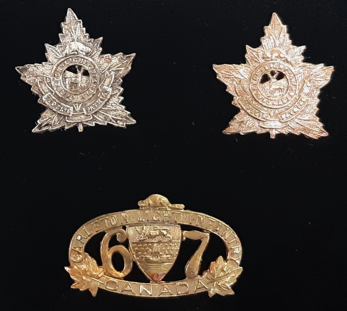 The Carleton Light Infantry was an infantry regiment of the Non-Permanent Active Militia of the Canadian Militia (now the Canadian Army). In 1936, the regiment was Amalgamated with The York Regiment to form The Carleton and York Regiment. Originated on 10 September 1869, in Woodstock, New Brunswick, as The Carleton Light Infantry. Redesignated on 5 November 1869, as the 67th Battalion, The Carleton Light Infantry. Redesignated on 8 May 1900, as the 67th Regiment Carleton Light Infantry. Redesignated on 15 March 1920, as The Carleton Light Infantry. Amalgamated on 15 December 1936, with The York Regiment and Redesignated as The Carleton and York Regiment. On 10 September 1869, The Carleton Light Infantry was authorized for service with companies at Centreville, Richmond, Victoria, Waterville, Brighton and Woodstock. On 5 November 1869, the unit was Redesignated as the 67th Battalion The Carleton Light Infantry. On 8 May 1900, the 67th Battalion The Carleton Light Infantry was Redesignated as the 67th Regiment The Carleton Light Infantry. On 6 August 1914, Details of the 67th Regiment, The Carleton Light Infantry were placed on active service for local protective duty. On 22 December 1915, the 104th Battalion, CEF was authorized for service and on 28 June 1916, the battalion embarked for Great Britain. After its arrival in the UK, the battalion provided reinforcements for the Canadian Corps in the field. On 24 January 1917, the battalion’s personnel were absorbed by the 105th Battalion (Prince Edward Island Highlanders), CEF. On 27 July 1918, the 104th Battalion, CEF was disbanded. FIDELIS PATRIAE (loyal to country).
