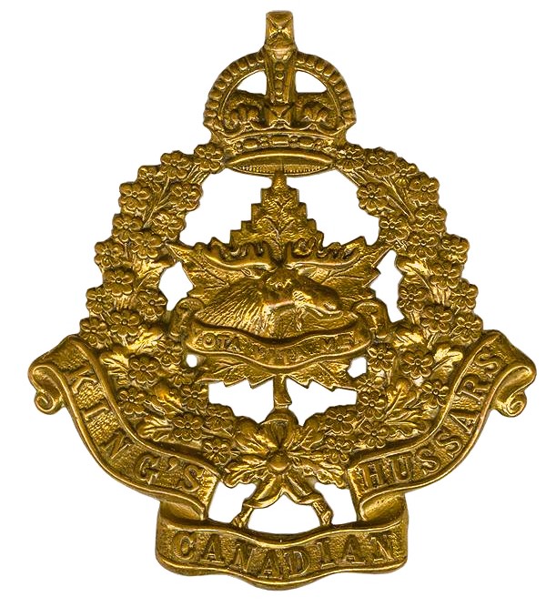 The King’s Canadian Hussars were a cavalry regiment of the Non-Permanent Active Militia of the Canadian Militia (now the Canadian Army). In August 1939, the regiment was converted to artillery and currently exists today as the 87th Field Battery, RCA. Originated on 12 June 1874, in Kentville, Nova Scotia as the King’s Canadian Hussars. Organized on 1 December 1903, as a full regiment. Reorganized on 1 April 1904, as the 14th King’s Canadian Hussars. Redesignated on 15 March 1920, as The King’s (Nova Scotia) Mounted Rifles. Redesignated on 1 December 1925, as the King’s Canadian Hussars. Amalgamated on 1 December 1936, with C Company of The Colchester and Hants Regiment and B Company of the 6th Machine Gun Battalion, CMGC and Redesignated as the King’s Canadian Hussars (Armoured Car). Converted on 1 August 1939, from Light Armour to Artillery and Formed the 87th Field Battery, RCA and the 88th Field Battery, RCA.