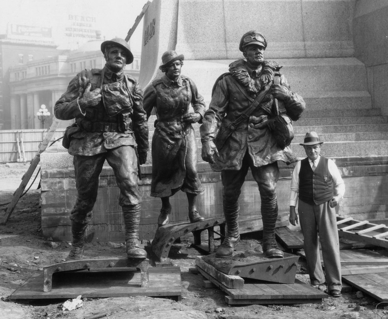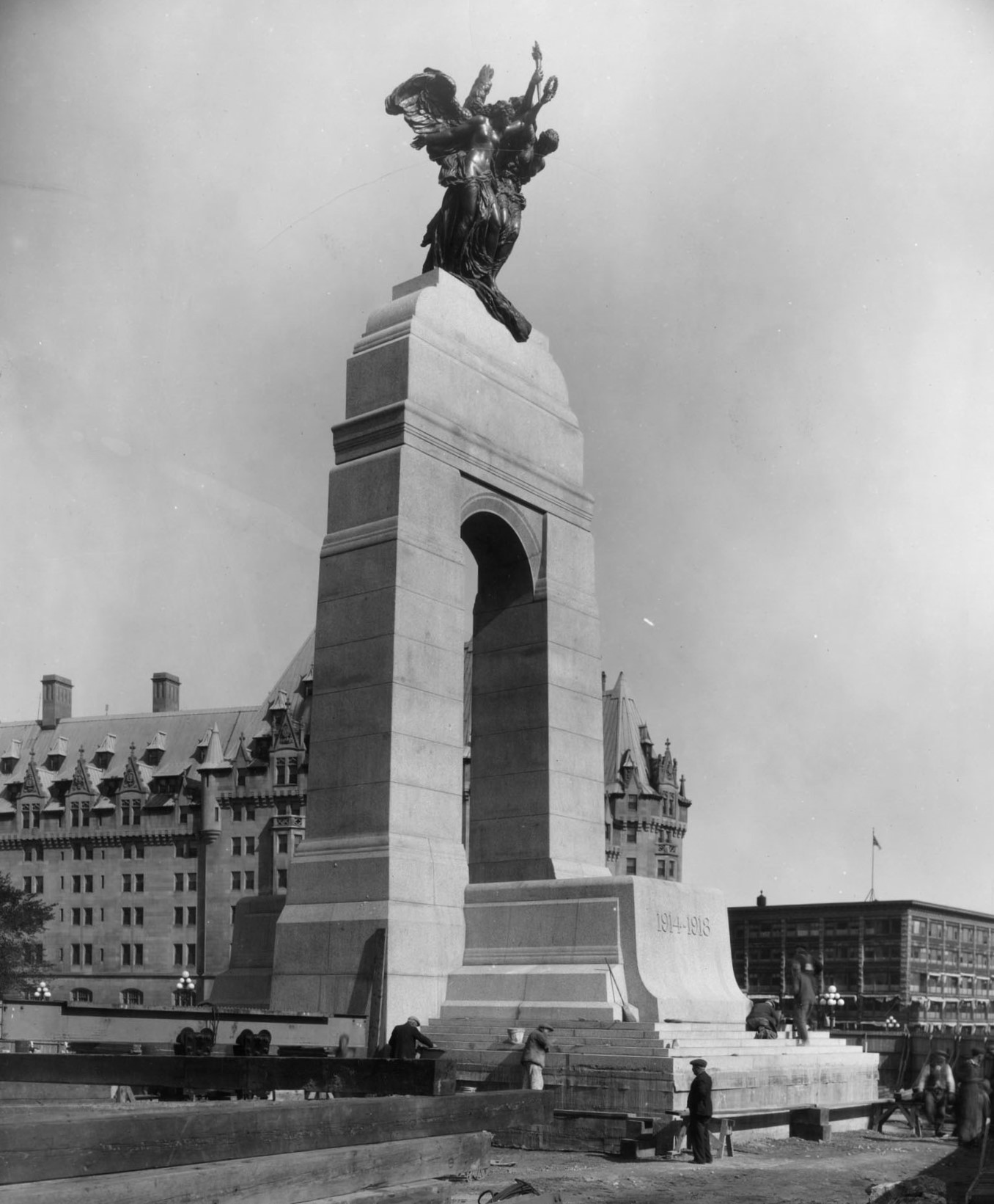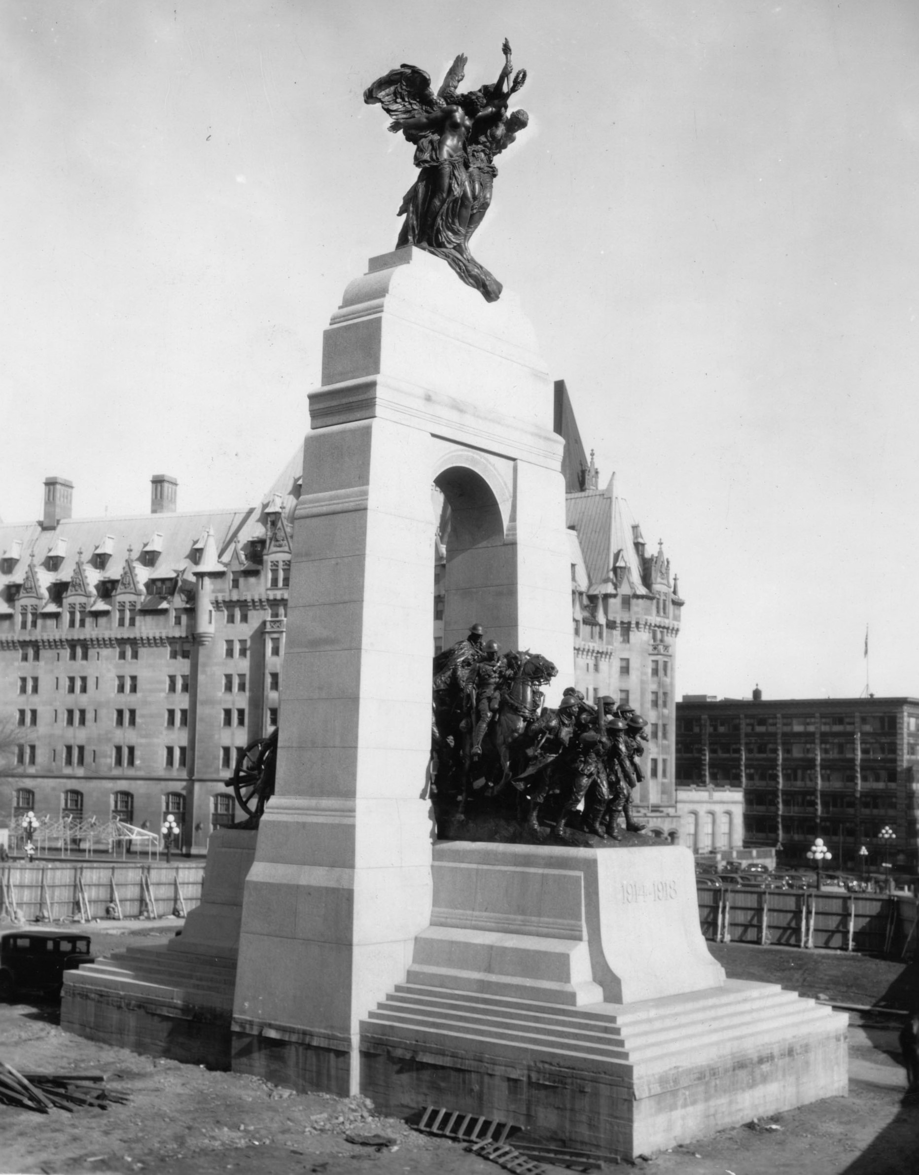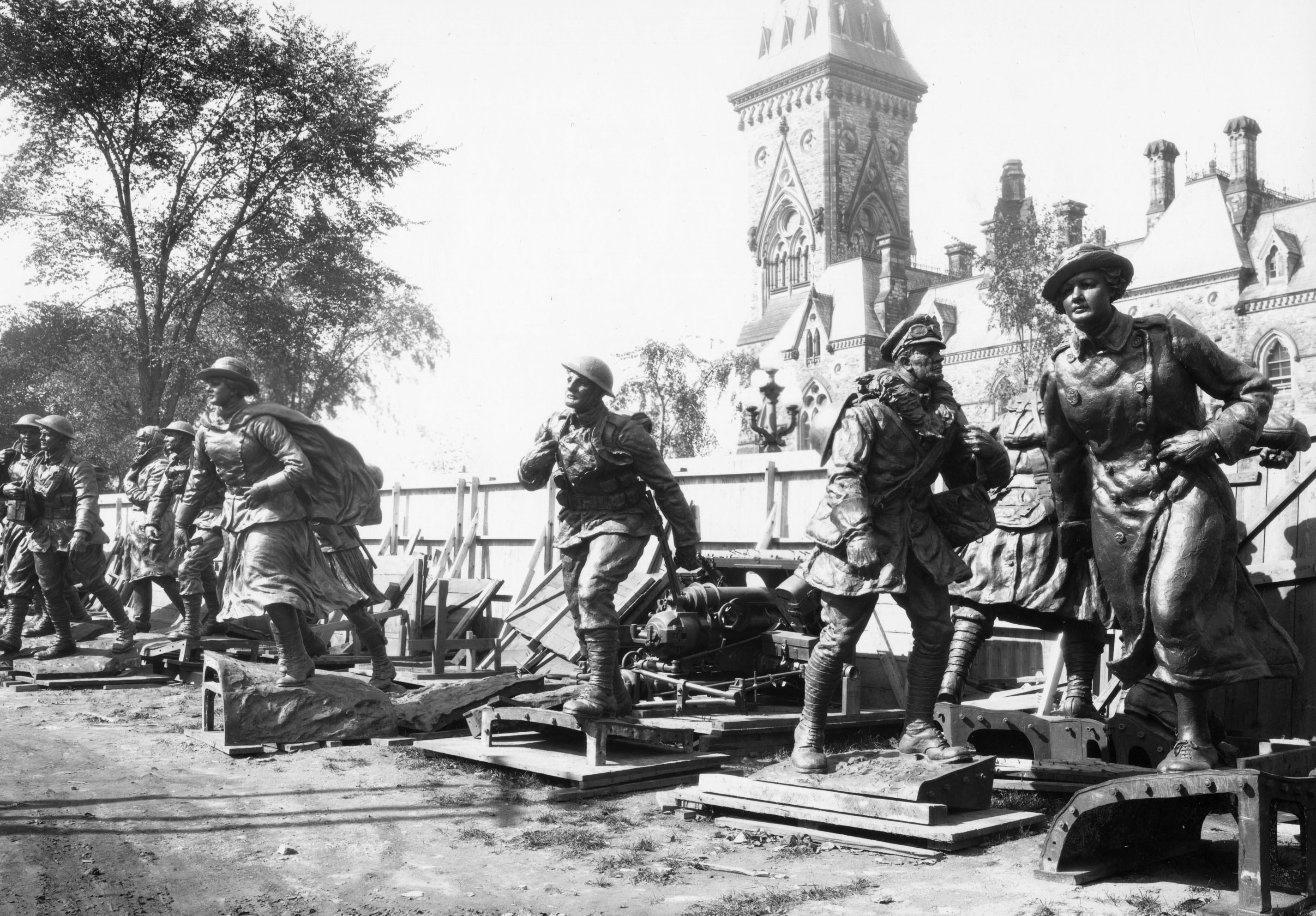 The National War Memorial in Ottawa, emerging figures just after assembly, 29 Sep 1938.