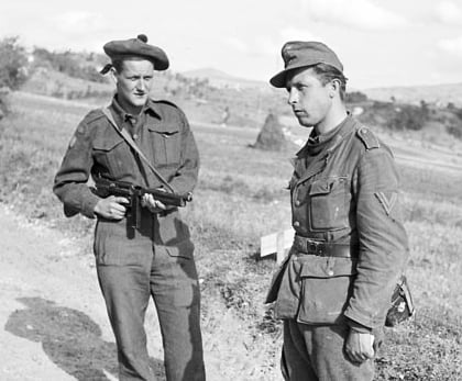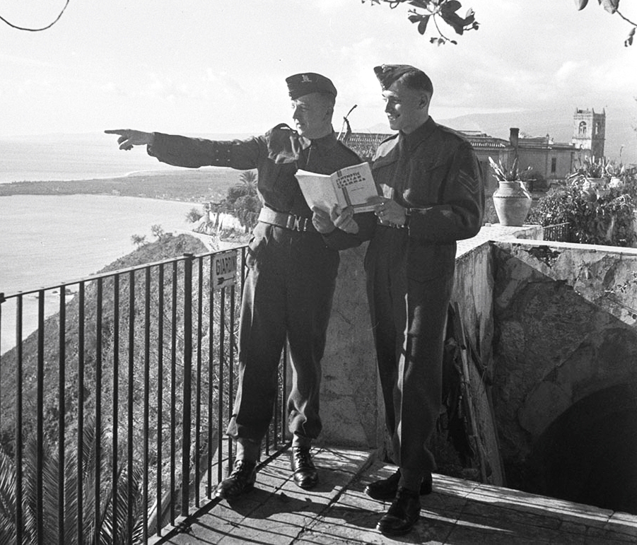 Sergeants W. McKeown and S.R. Forse, both of the Canadian Provost Corps (C Pro C), Taormina, Italy, ca. 23-24 November 1943.