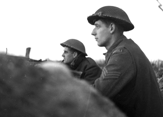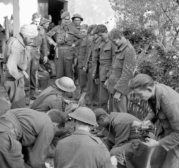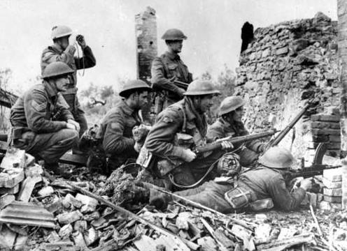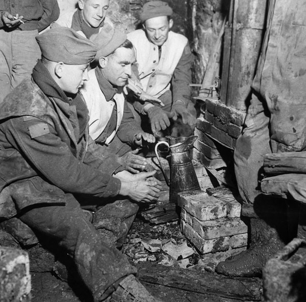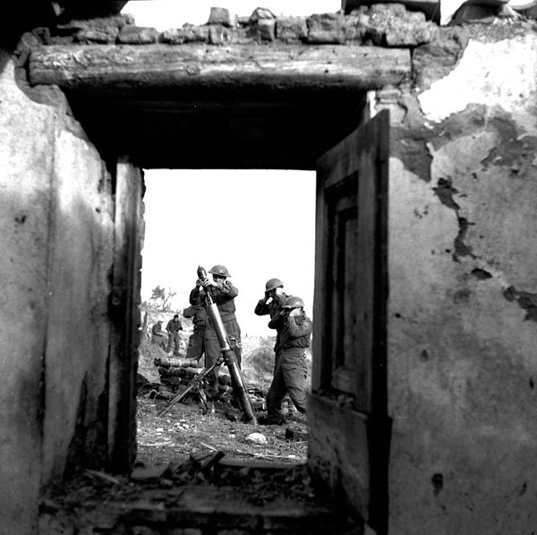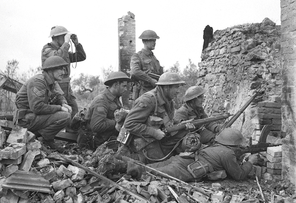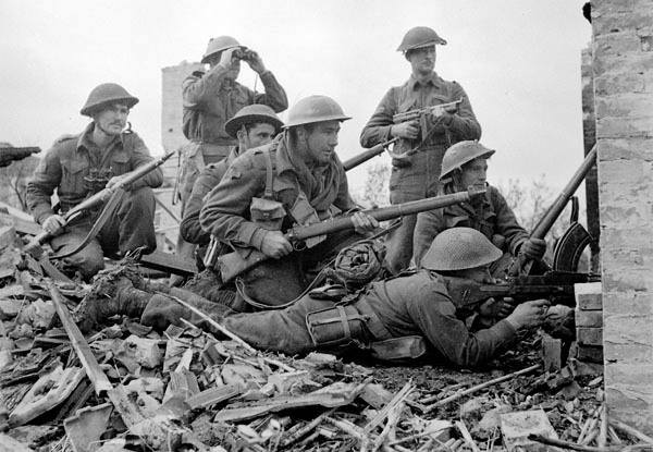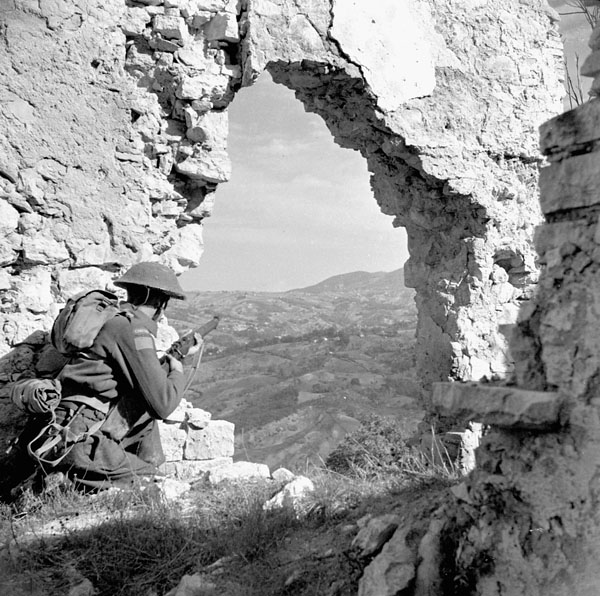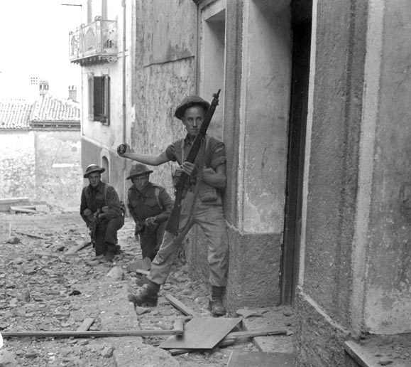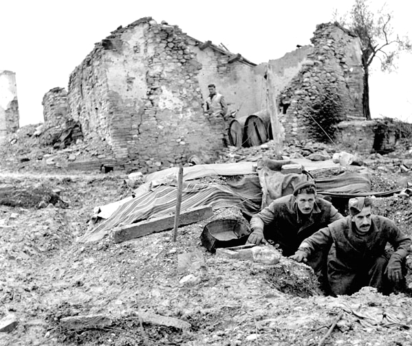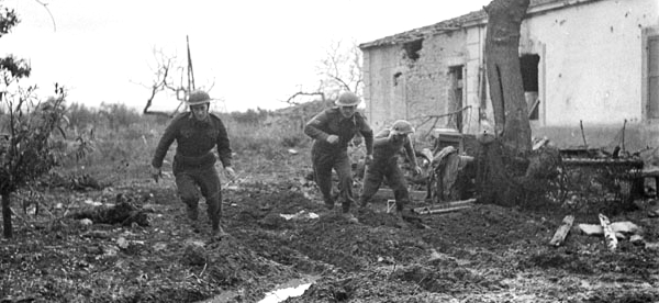 Infantrymen of The 48th Highlanders of Canada dealing with a German counterattack, San Leonardo di Ortona, Italy, 10 December 1943.