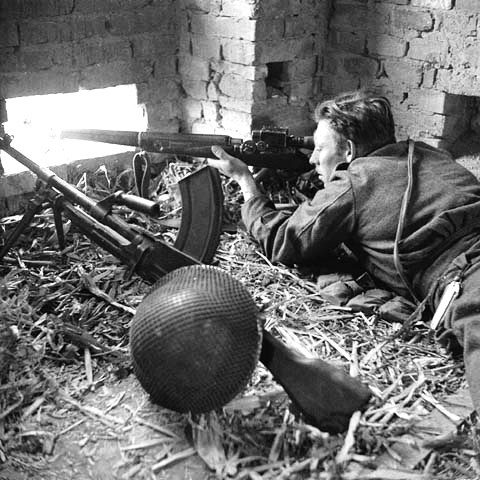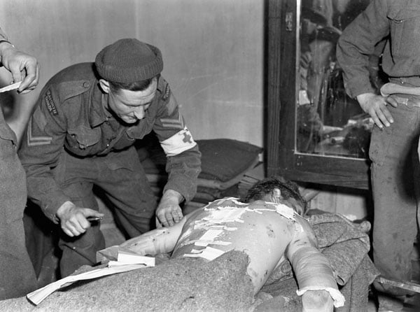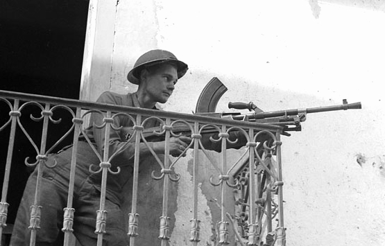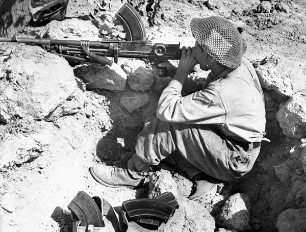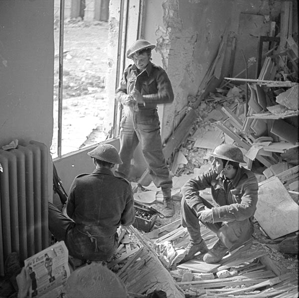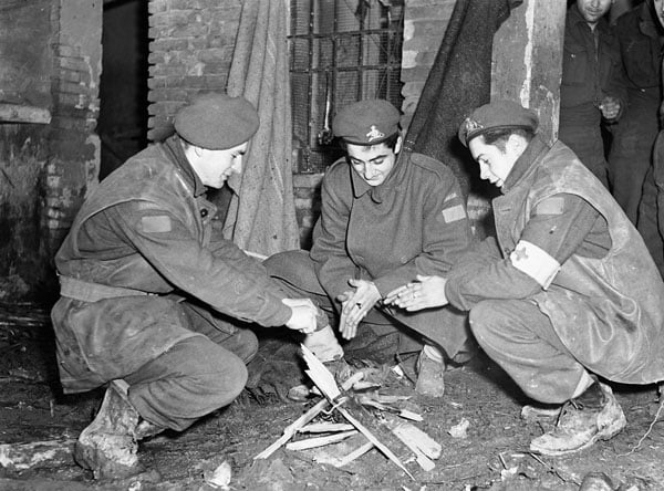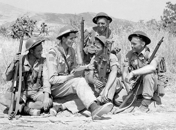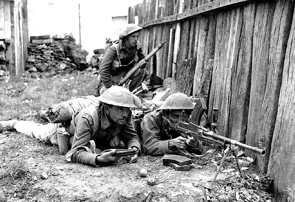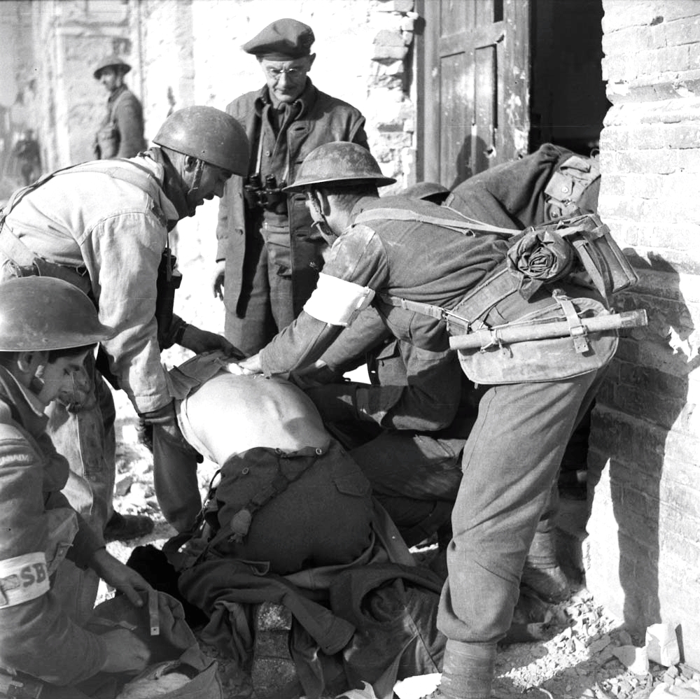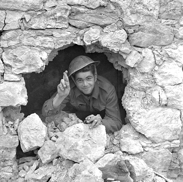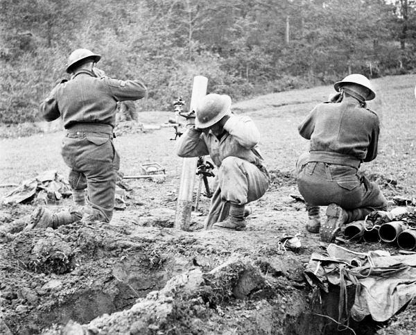 Infantrymen of The 48th Highlanders of Canada dealing with a German counterattack, San Leonardo di Ortona, Italy, 10 December 1943.