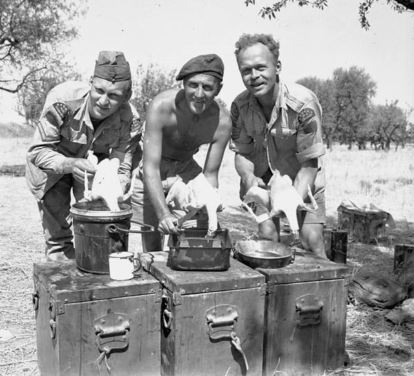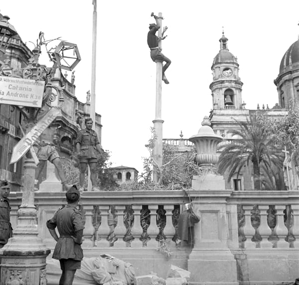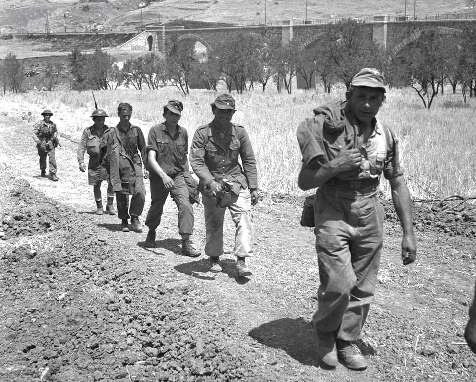 On 11 July, the Canadians were delayed, not as much by enemy opposition than by thousands of Italian troops wanting to surrender. The Canadians followed an inland route that guarded the British Eighth Army’s left flank up the eastern coastline toward Catania and the ultimate objective of the Strait of Messina, which divides Sicily from the Italian mainland.