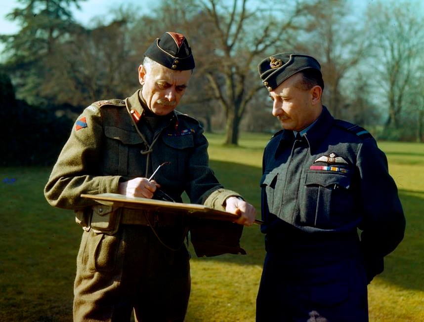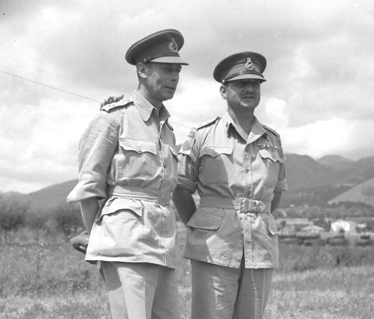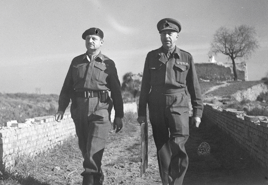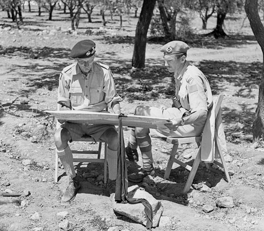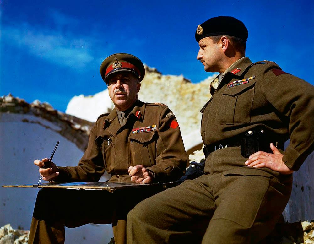General Bernard Law Montgomery with Lieutenant-General George S. Patton, Jr., at the Palermo, Sicily airport, 28 July 1943.
