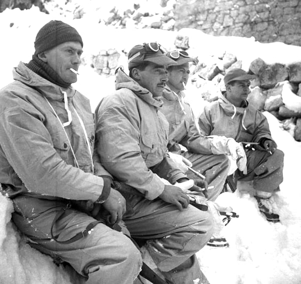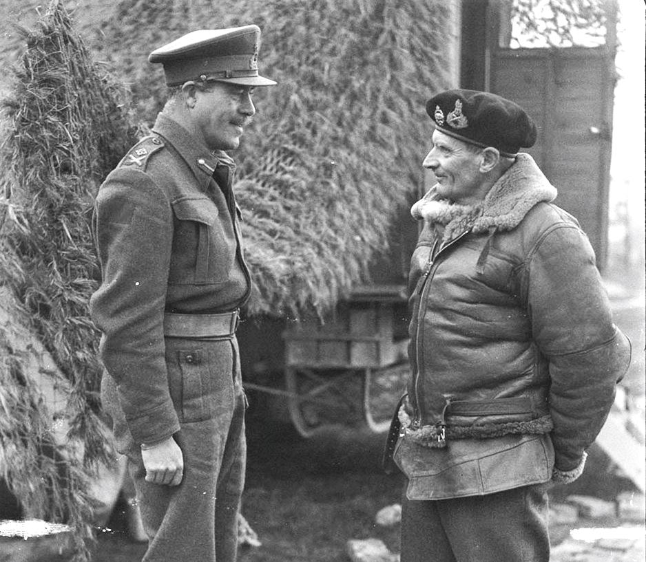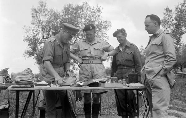Visit of General Sir Alan Brooke to the 1st Canadian Division. (L.-R.): Gen. Sir Harold Alexander, Lieutenant-Colonel Kit Dawnay, General Sir Alan Brooke, Sir Bernard Montgomery, and Brigadier Bruce Matthews, CRA 1st Cdn Div, 14 Dec 1943.