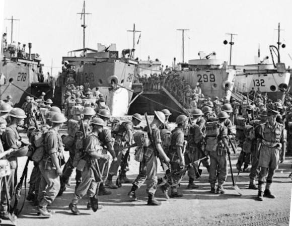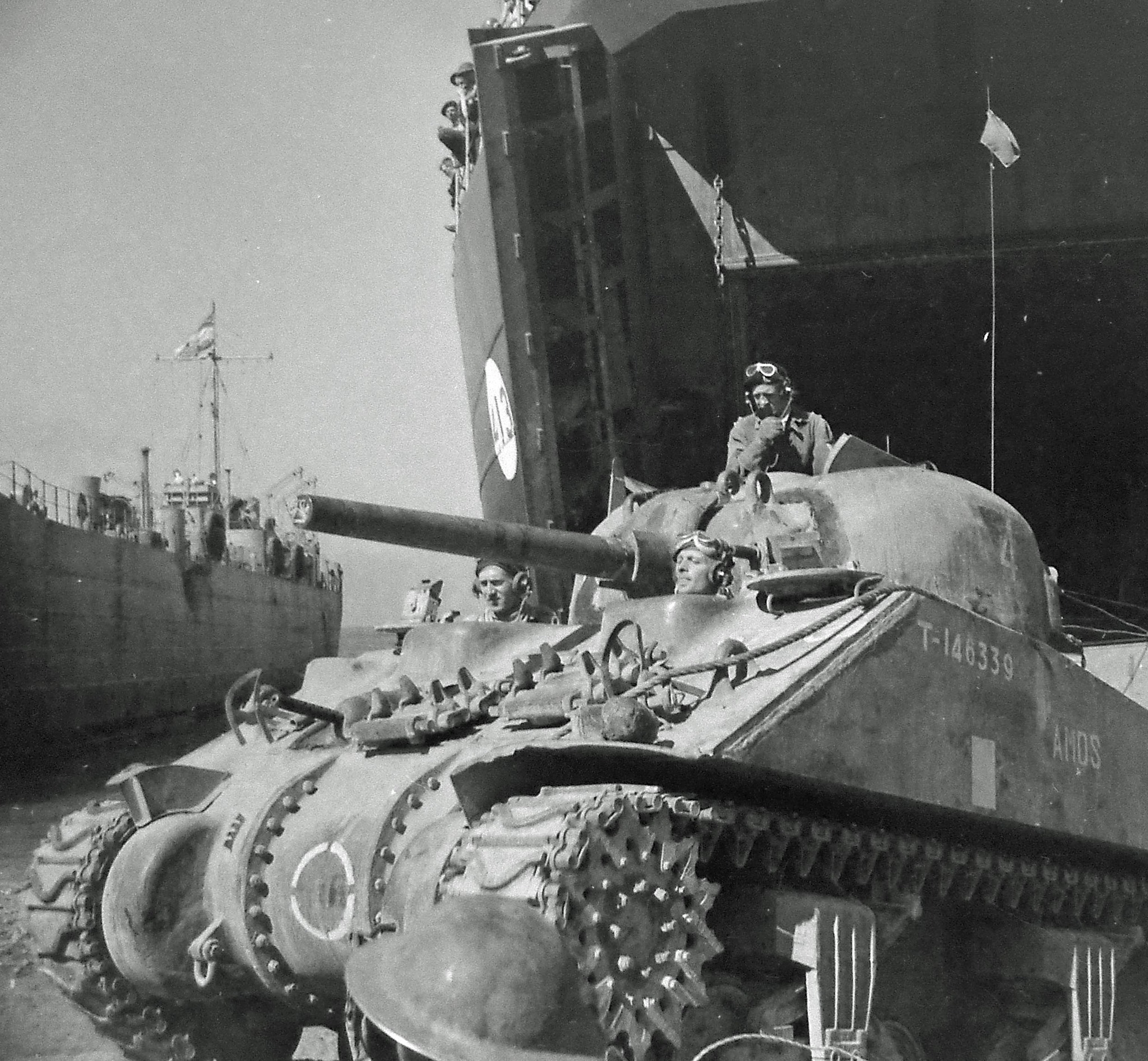 7th LAA Regt, RCA disembarking at Catania, Sicily, 8 Dec 1943.