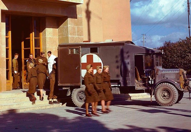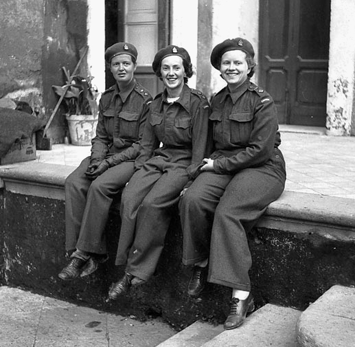 Personnel of the Canadian Women’s Army Corps (C.W.A.C.) disembarking from a troopship at Naples, Italy, 22 June 1944.