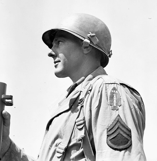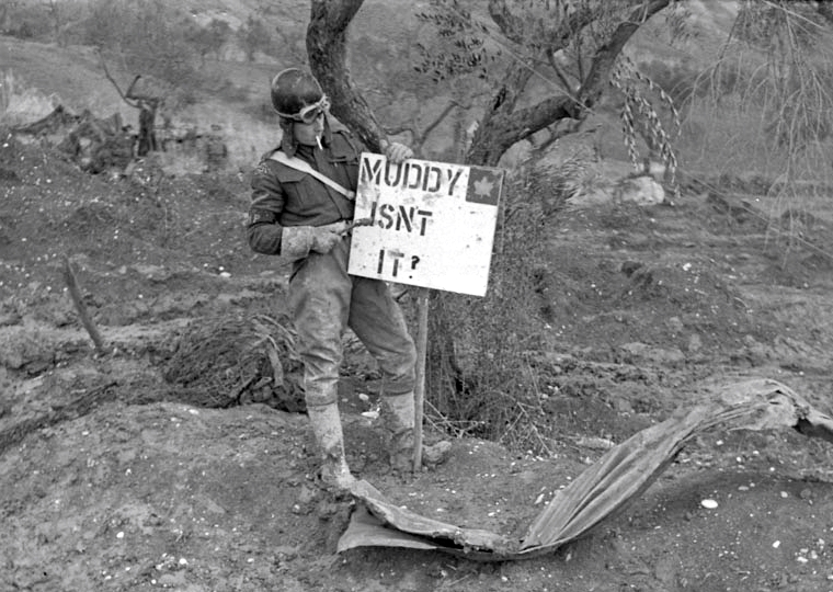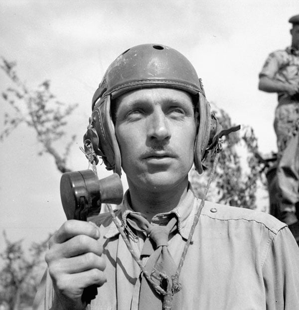 Lieutenant Robert O. Campbell of the Canadian Army Film and Photo Unit near the Hitler Line, Italy, 23 May 1944.