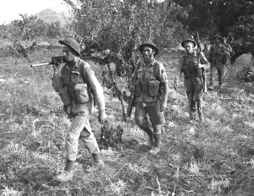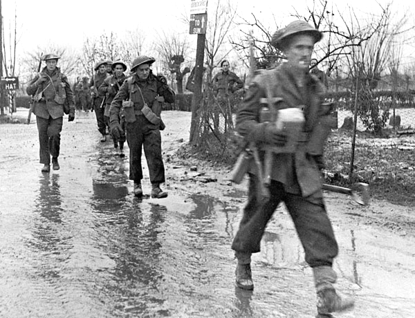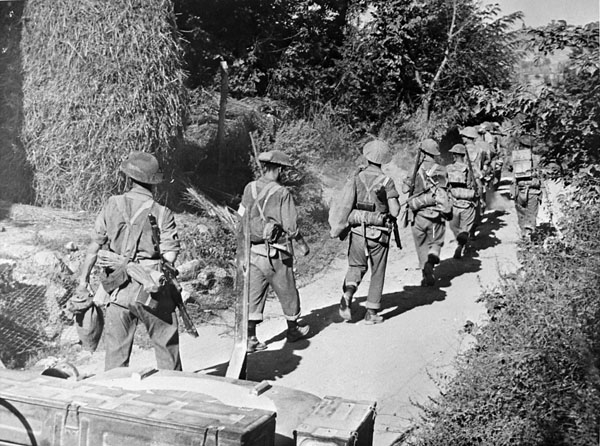 48th Highlanders of Canada on the march near Modica, Italy, 12 July 1943.