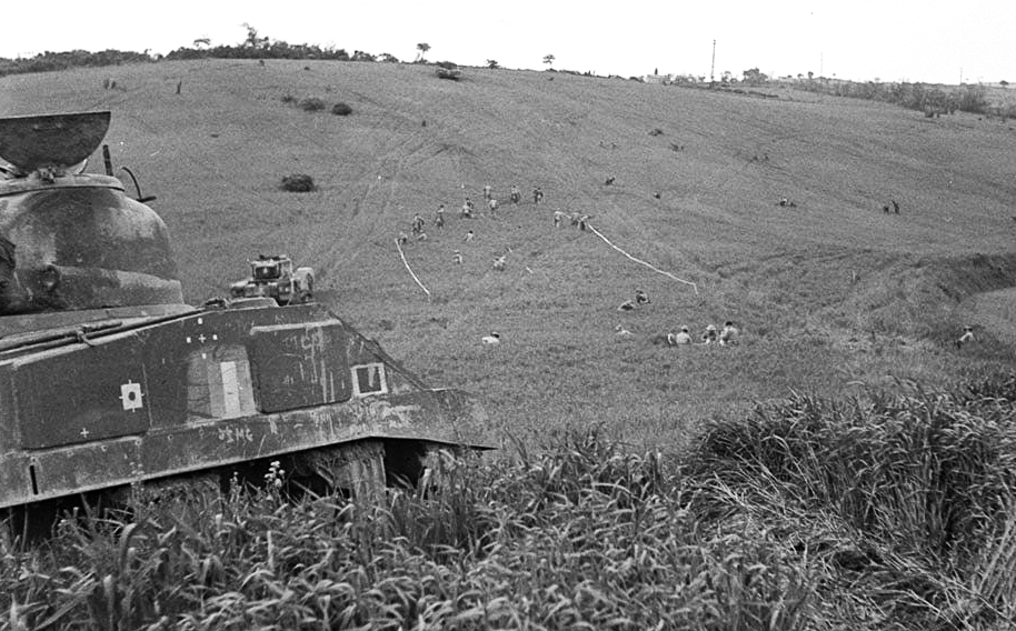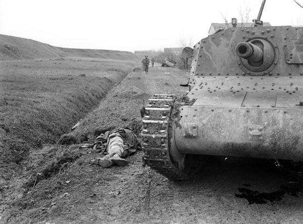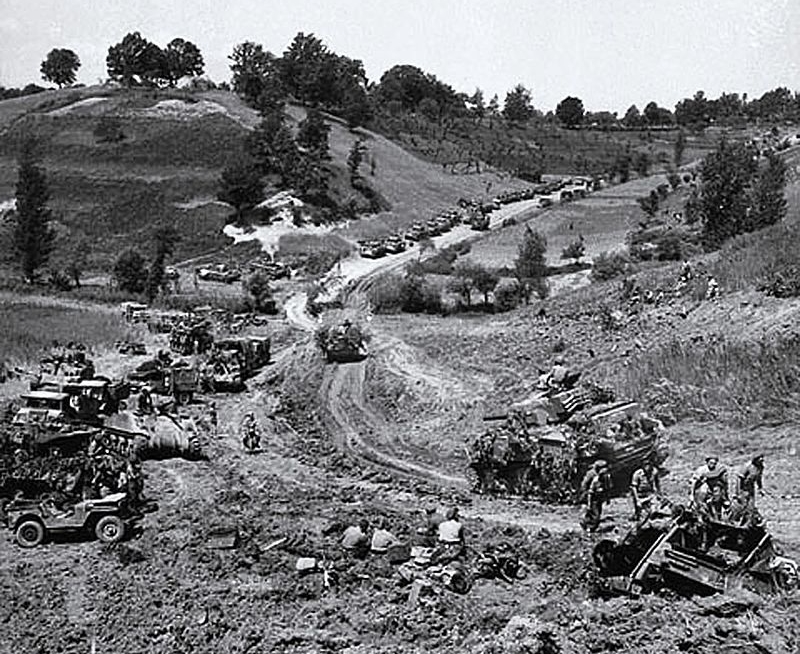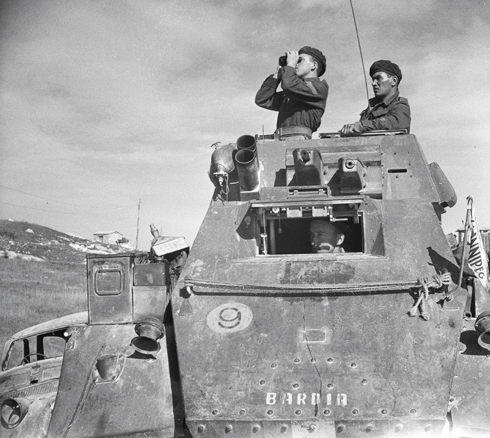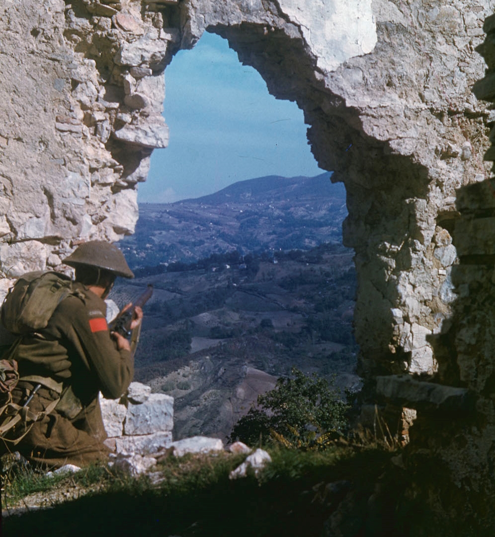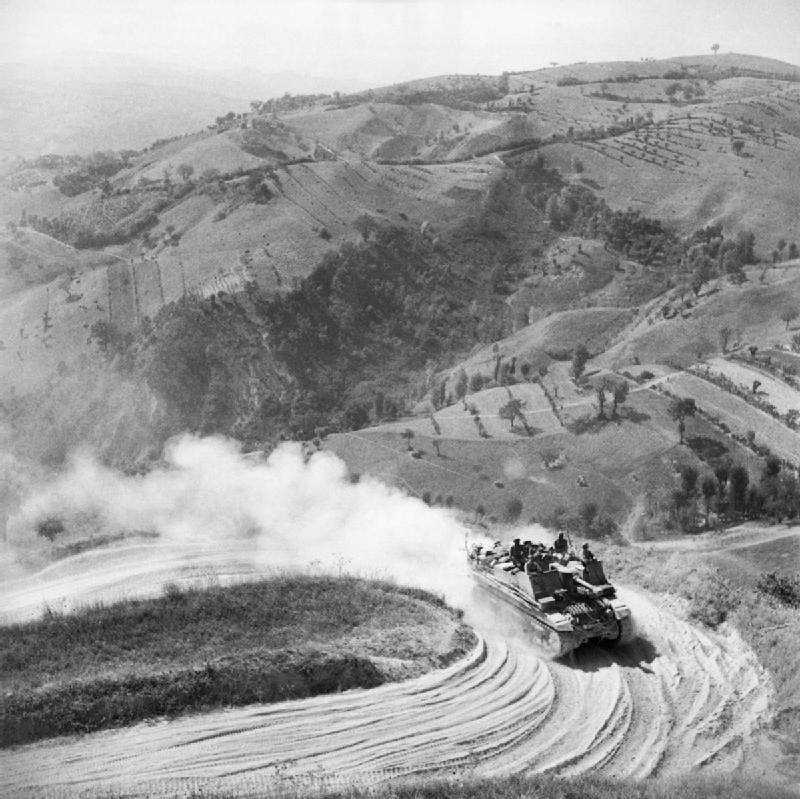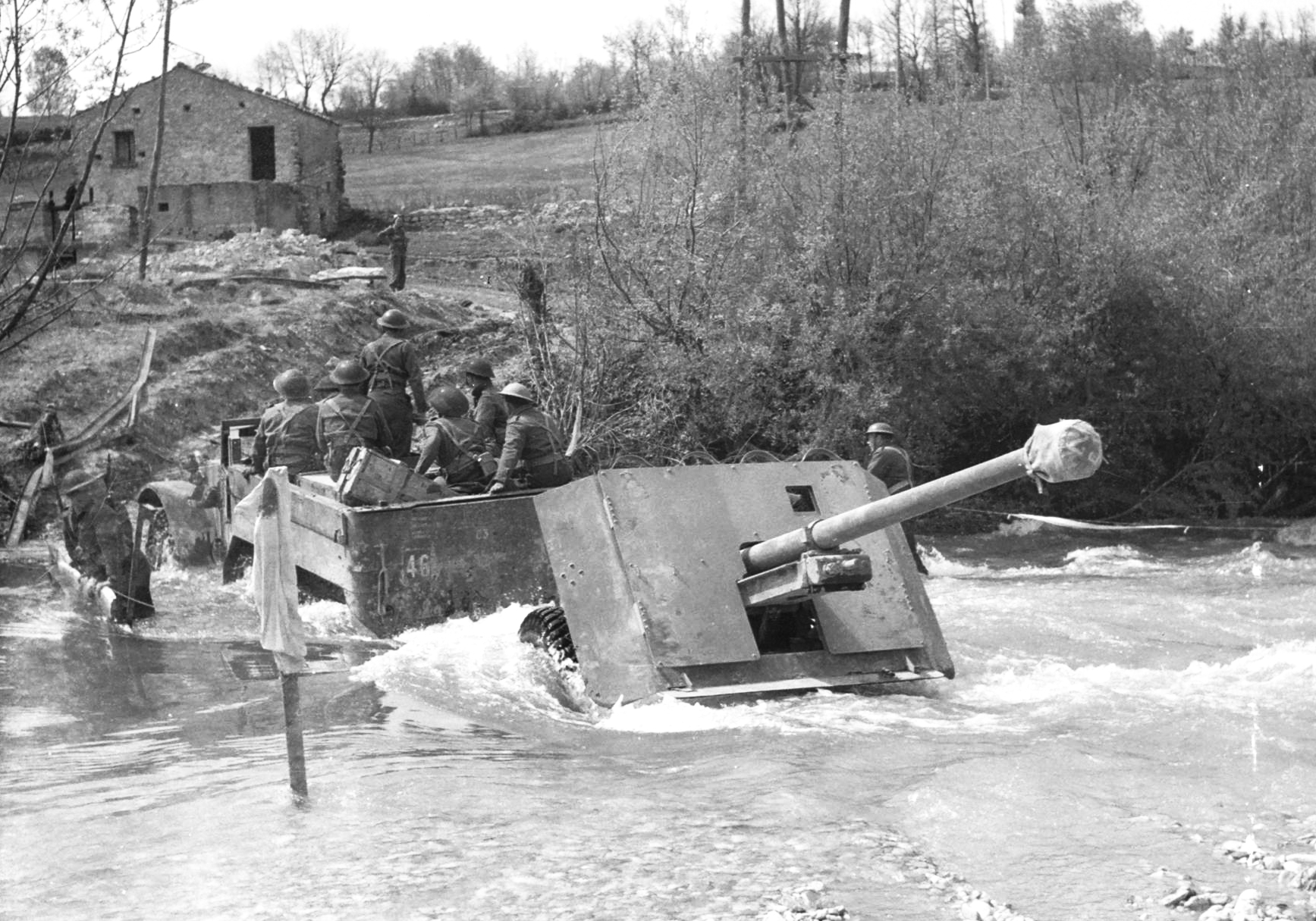 48th Highlanders of Canada advancing towards the Gothic Line near the Foglio River, Italy, 1944.