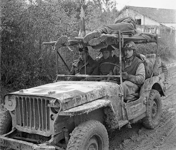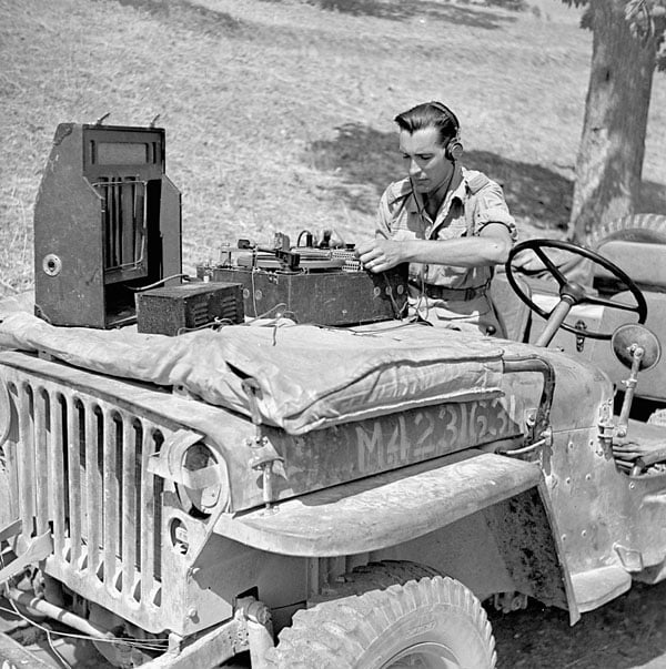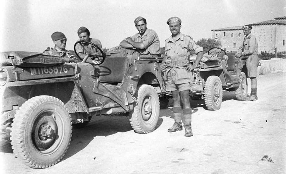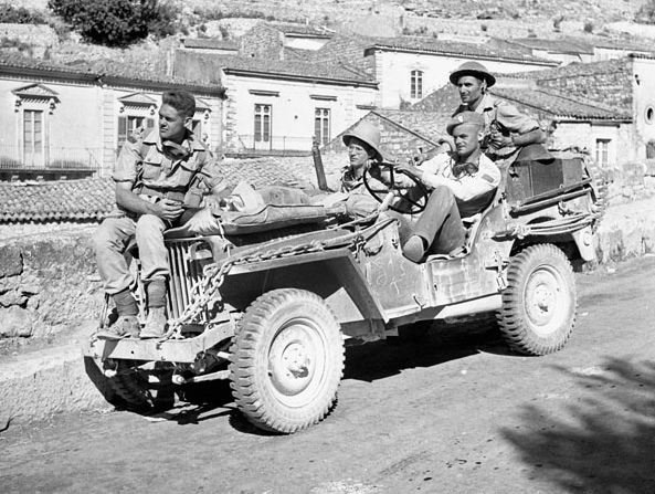 Canadian war correspondents in a jeep, Modica, Italy, 13 July 1943.